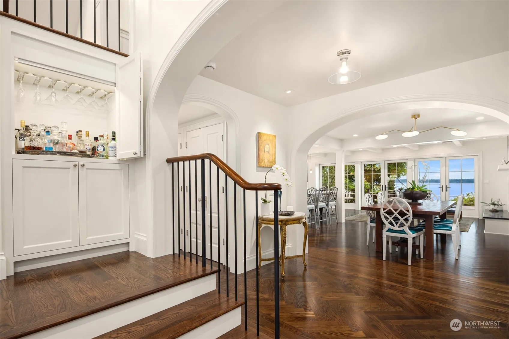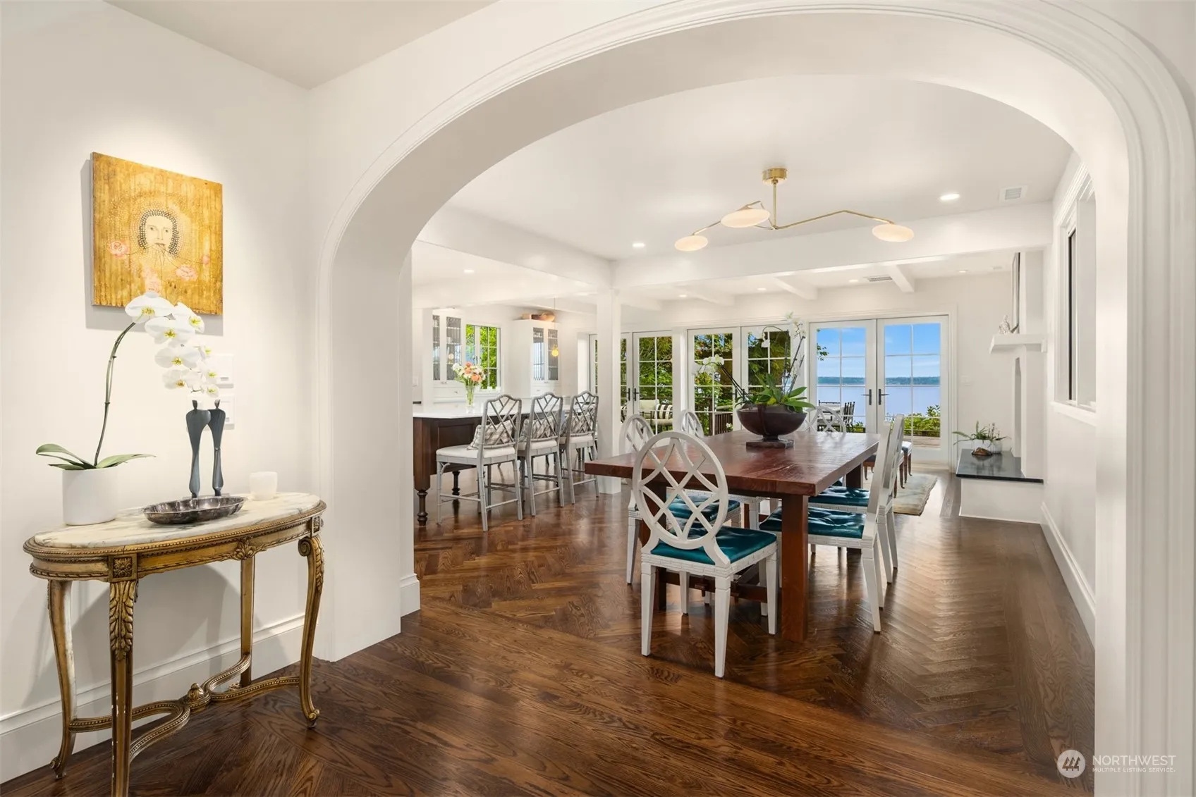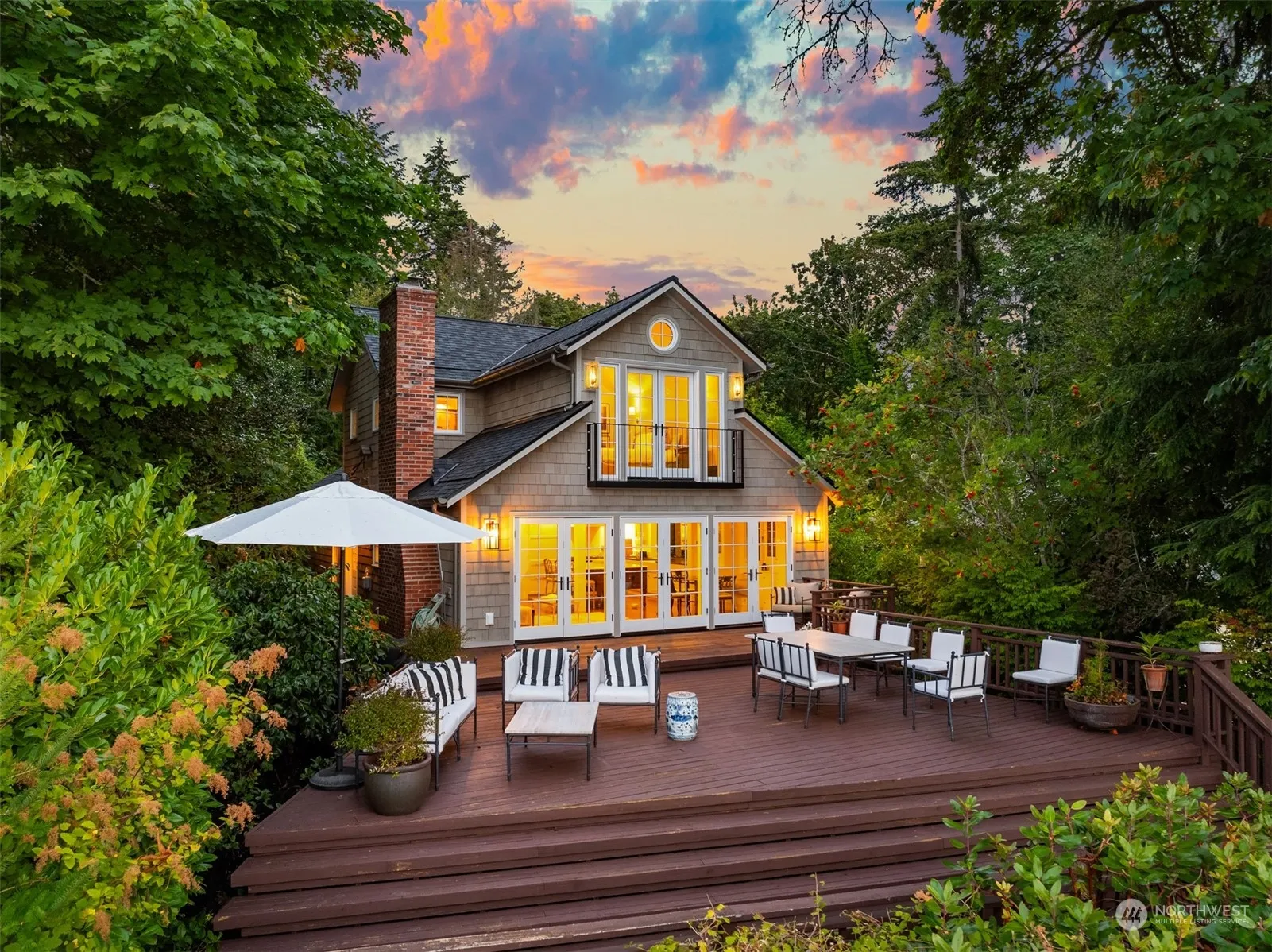Welcome to a waterfront home that embodies historical significance and modern elegance. This beautifully transformed home showcases meticulous attention to detail, blending its charming original features with luxurious contemporary finishes. Expansive windows in the great room and owner’s suite frame breathtaking 180 degree views of Seattle, the Cascades, and Mount Baker, seamlessly connecting indoor and outdoor living. Highlights include chef’s appliances, exquisite herringbone flooring, leaded glass cabinetry, arched doorways, and a custom soapstone and stucco fireplace. Perfect for entertaining, the property boasts expansive decks, a climate-controlled wine cellar, and discreet guest quarters. This is truly the ultimate jewel box home.