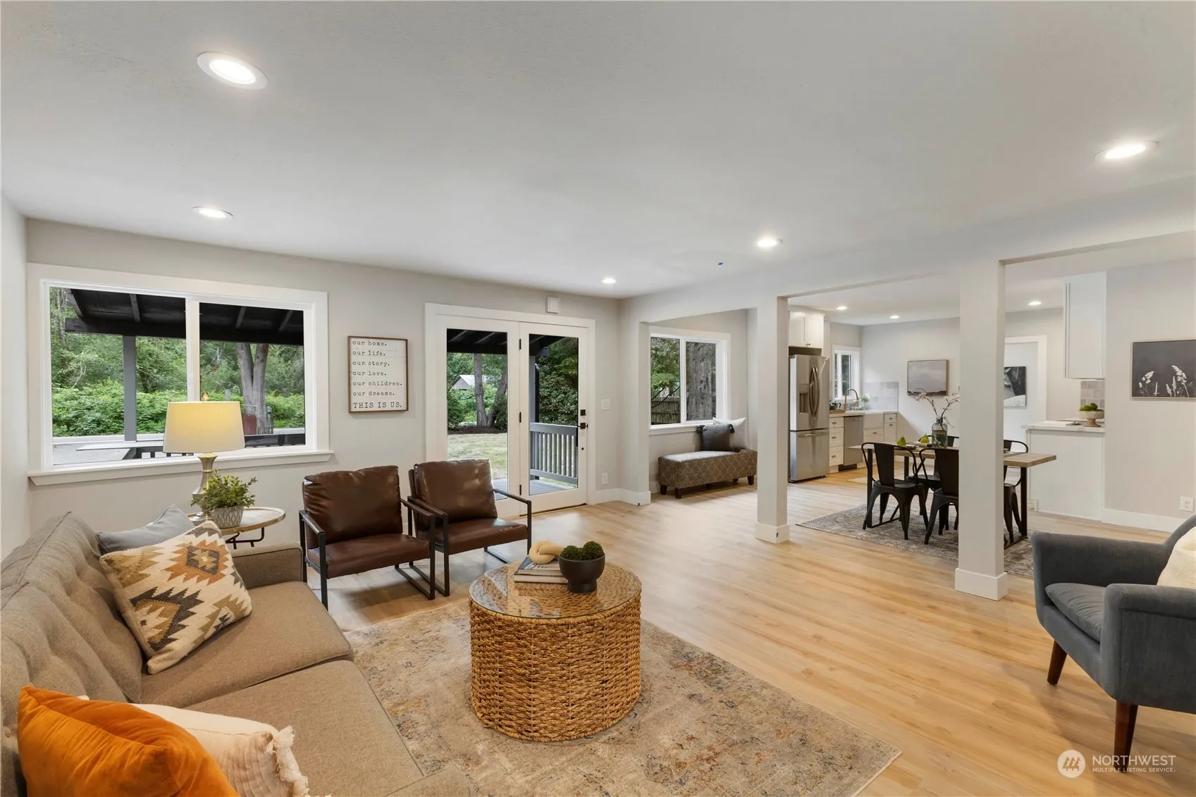 Nestled on a serene 1.58-acres, this beautifully remodeled modern farmhouse offers a peaceful retreat just 20 mins from city life. Open-concept lvg, dining & kitchen create an inviting space for gatherings. Bright & airy spacious kitchen features new shaker cabs, marbled quartz counters & SS appliances. Bedroom wing includes 2 secondary BRs & full BA w timeless finishes. Primary suite boasts 3/4 BA w elegant tile work & new fixtures. 1,110 sq ft on one level plus spacious attic offers potential for added square footage – tons of rm to expand & build more equity! Ample rm for hobbies, gardening or even horses. Convenient access to Redmond, Microsoft, Woodinville, schools & more, this home is not just a place to live—it’s a place to thrive!
