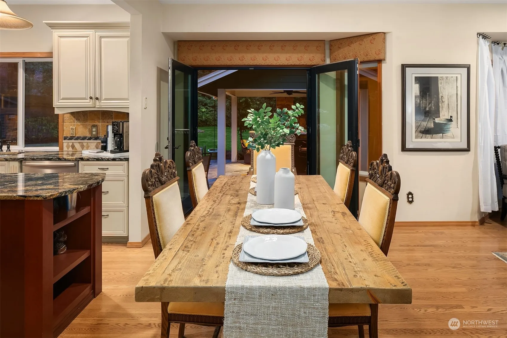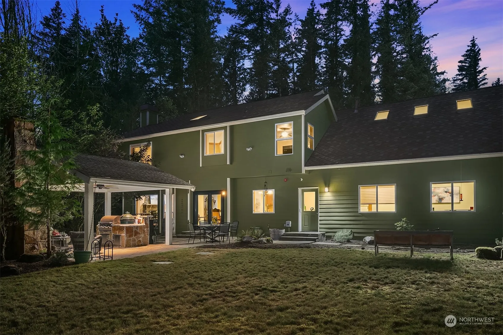 Nestled in serene privacy & in the backyard of Twin Falls State Park (privacy protected!), this sanctuary on over an acre is the perfect retreat for those seeking space, luxury, & a blend of relaxation & adventure. Bathed in warm southern sunlight, this charmer features hardwood floors throughout most of the home, versatile & spacious bonus rooms both up & down, & a backyard oasis w/ covered outdoor living space that is simply stunning w/ built-in grill & smoker, Bluestone patio & a rustic stone wood-burning fireplace, perfect for entertaining. The front porch is welcoming & greets you warmly. Durable Hardie-plank siding & a 50-year roof combines lasting quality w/ comfort & style, making it an ideal sanctuary for modern living.