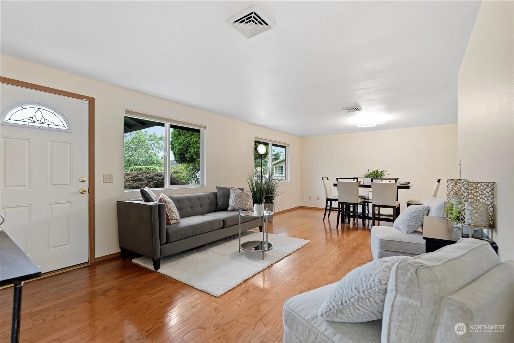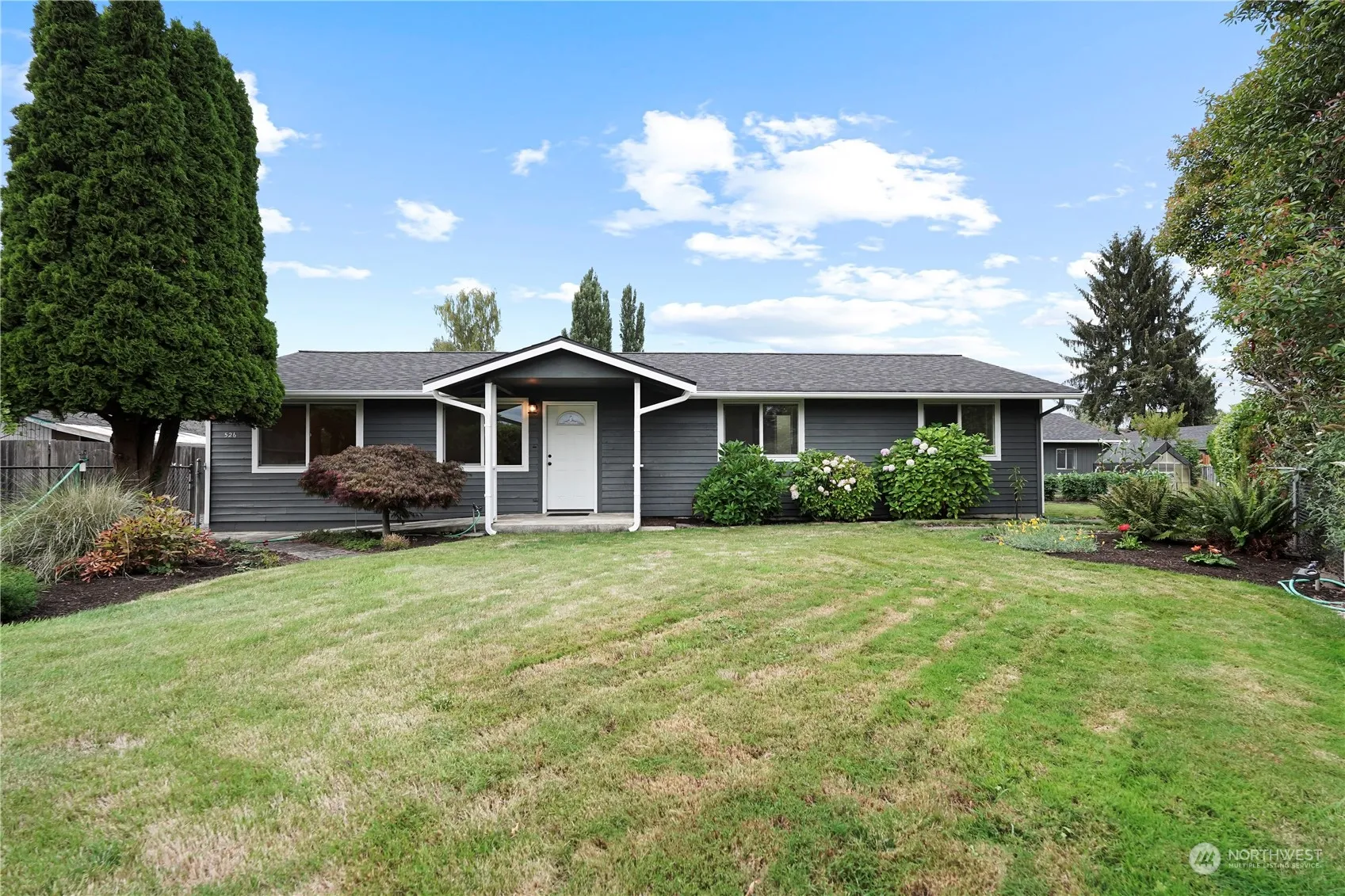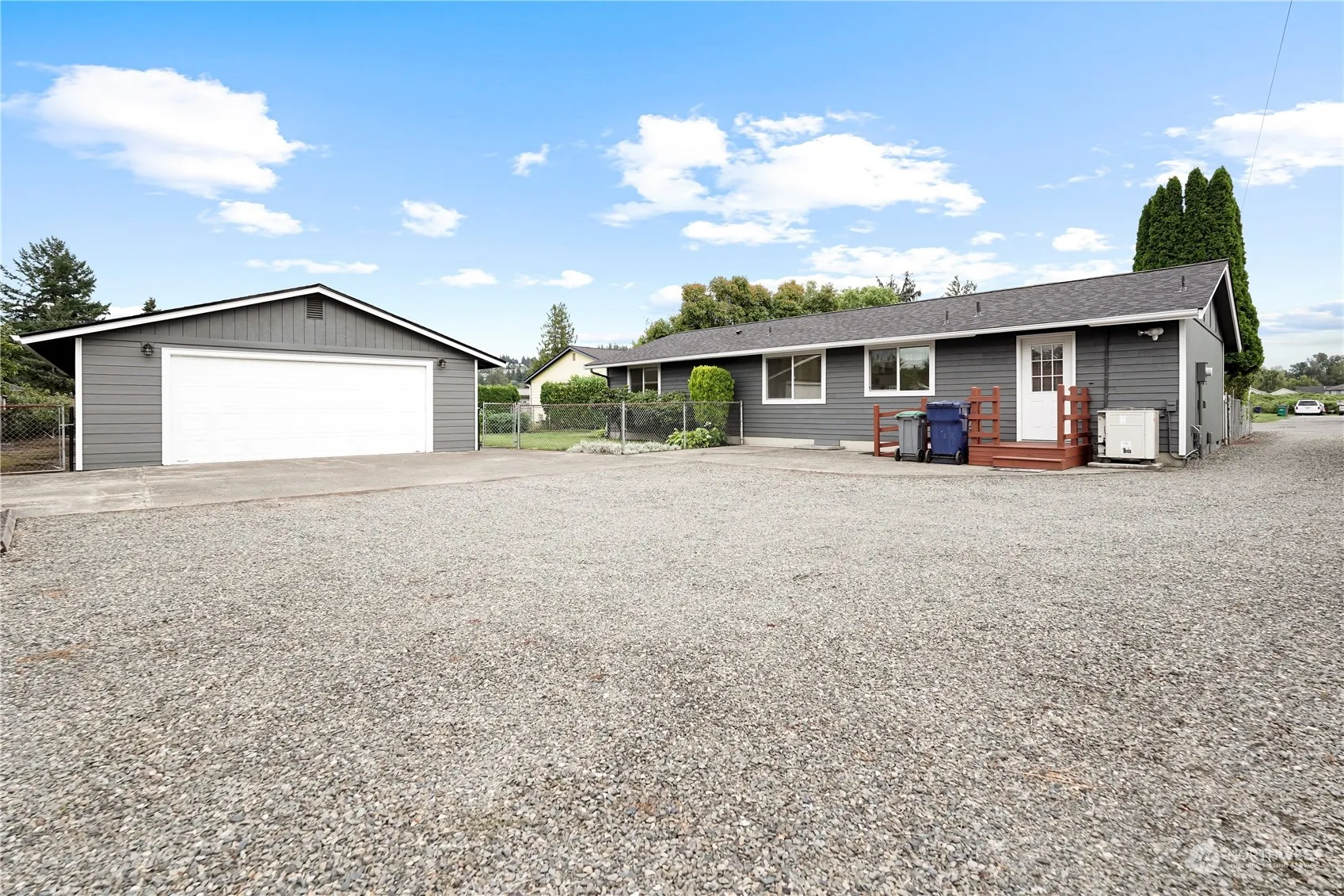 Rambler on beautiful grounds with HUGE GARAGE + OVERSIZED SHOP! This 3 bedroom home features all main floor living with open dining space for potential oversized living room, large eating space in kitchen and main bath with giant walk in shower. Functional utility room w/ powder bath and access to backyard, driveway and garage/shop. Enjoy well manicured grounds w/ fruit trees, grape clusters, berries and garden space. Completely private and fully fenced with RV parking area. The impressive garage can be used as current oversized two car garage with shop space or convert for huge 4+ car garage. Potential awaits with a possible secondary living space in the shop with partial kitchen. Your own oasis awaits!