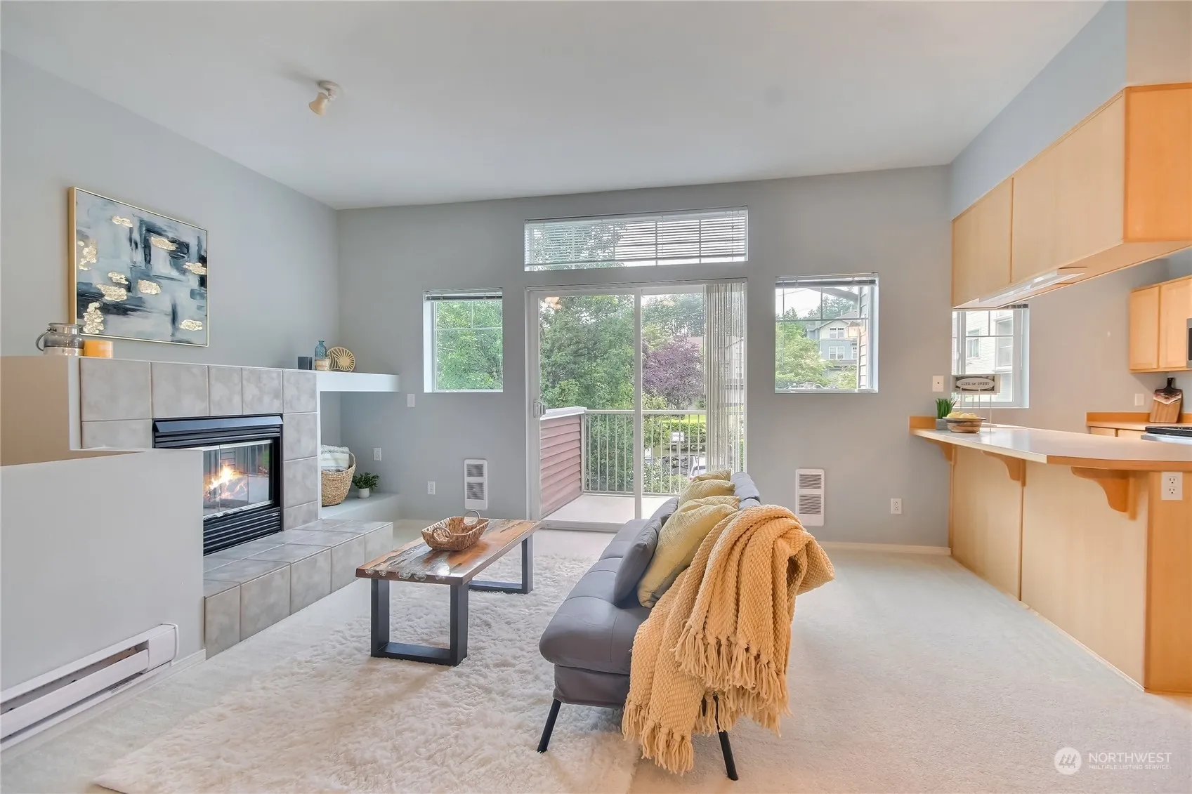 Lovely and spacious one bedroom condo located in RiverRidge. This condo boasts an open floor plan with a lovely fireplace. The bedroom is spacious with a walk-in closet and custom black out blinds. Large utility room with a full-sized washer and dryer. Nice sized deck to enjoy summer evenings or morning coffee. Nice sized Kitchen with newer appliances. Ample storage available in attached 1-car garage. Conveniently located just minutes from I-5 and easy access to I-405. Community includes a sport court and playground. Easy commuting location to many areas. Low HOA dues and NO rent cap!