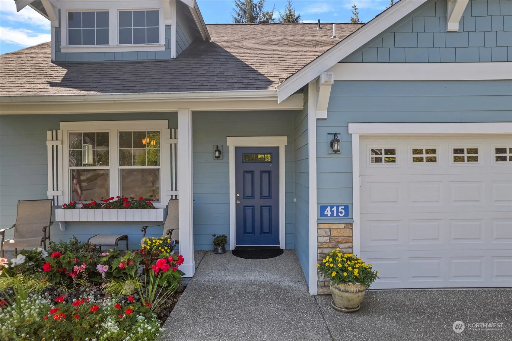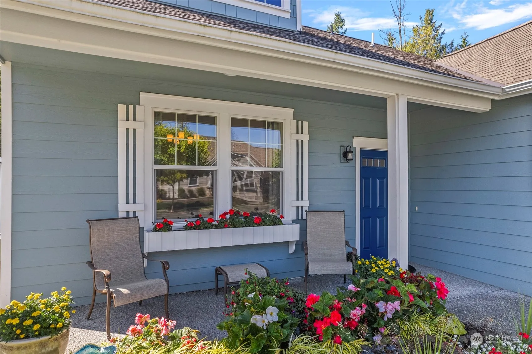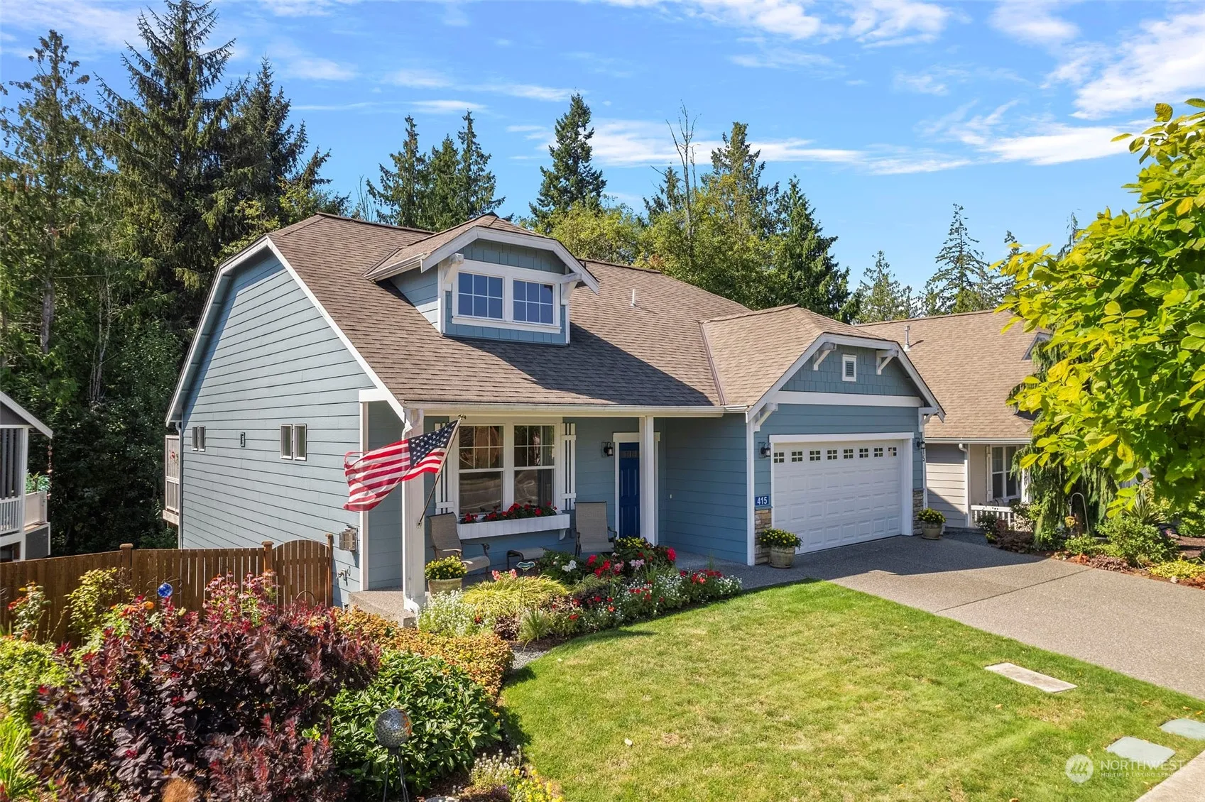 Welcome to Woodside; a vibrant 55+ community. This NO-STAIR entry home backs onto a GREENBELT. The versatile “Juniper” layout offers two MAIN-FLOOR bdrms plus a third bdrm & full bath upstairs perfect for guests or a caregiver. Enjoy vaulted ceilings, lots of natural light, a cozy gas frplc & ample wall space for art and photos. The kitchen features maple cabinets, granite cntps, stainless applcs and a walk-in pantry. The dining area offers views of the trees and features the perfect wall for your china hutch. The MAIN-FLOOR primary suite has a double vanity, walk-in closet & walk-in shower. Spacious two car garage w/ no stair entry. Clubhouse, trails, parks & close proximity to grocery & medical facilities. No flood zone. Buyer to verify.