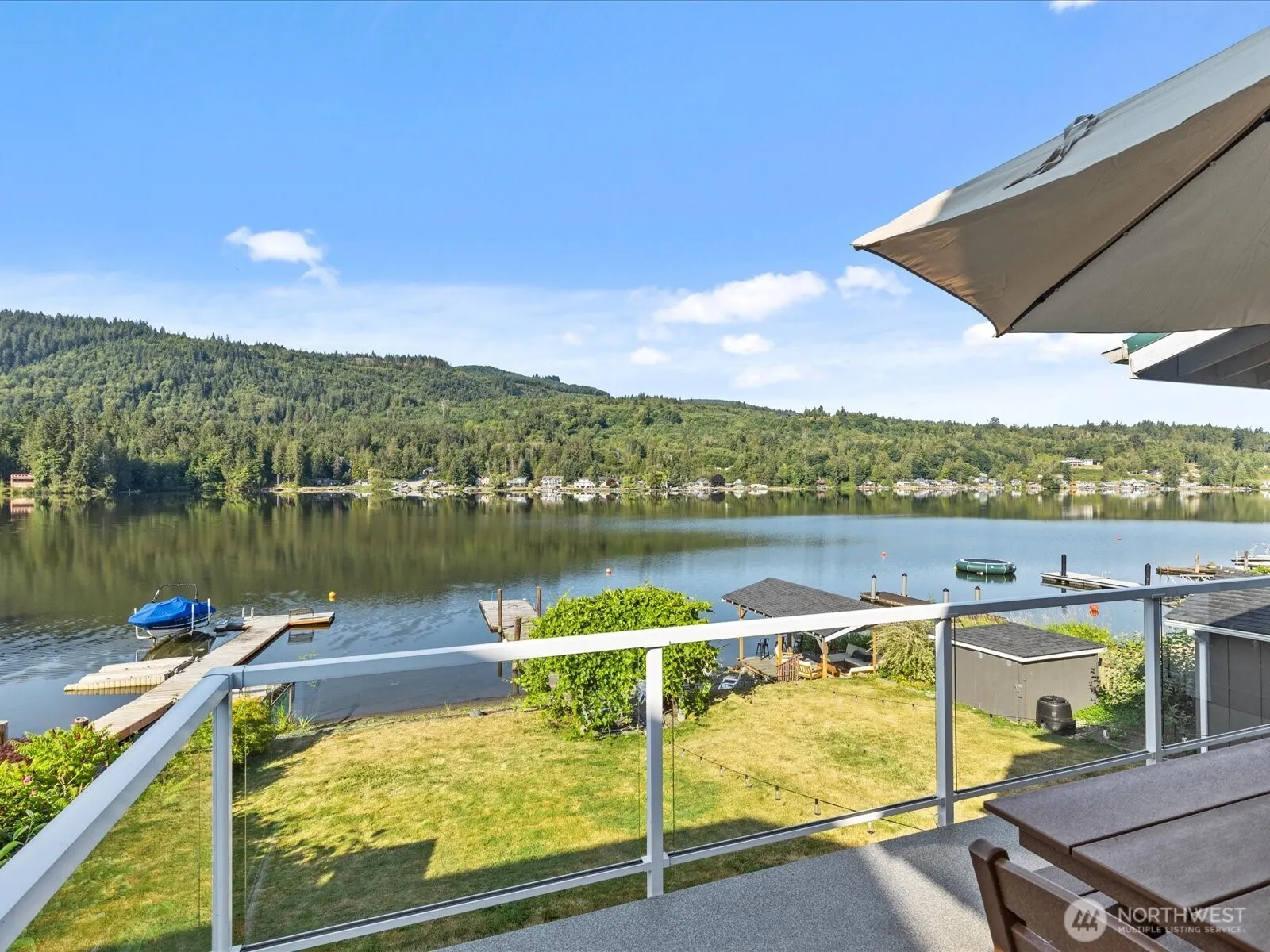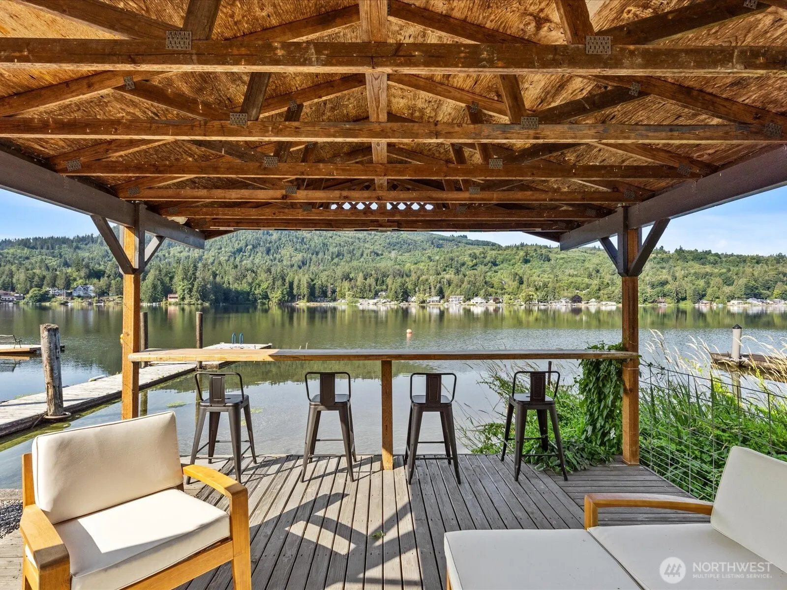 Big Lake waterfront retreat with 75’ of shoreline, sandy beach, firepit, & rare grandfathered waterside gazebo with bar, a feature you can’t build today! This 3-bed, + 1 non-conforming bed, 3 bath home offers nearly 3K sq ft of updated living space with new roof, windows, flooring, lighting, remodeled baths & efficient radiant boiler. Nearly every room boasts lake views. Open-concept main floor with gas fireplace, spacious primary suite upstairs, plus lower-level rec room w/kitchenette ideal for guests or ADU potential. Huge flat fully fenced yard for games, fruit trees & berry bushes, 2 outbuildings, and tons of parking for guests, RVs & boats. 50 ft dock and boat lift. A true all-season lakefront escape, perfect for relaxing and hosting.