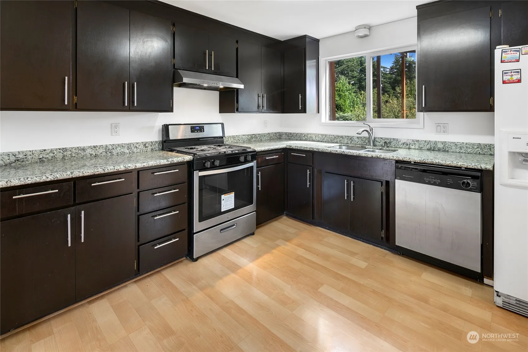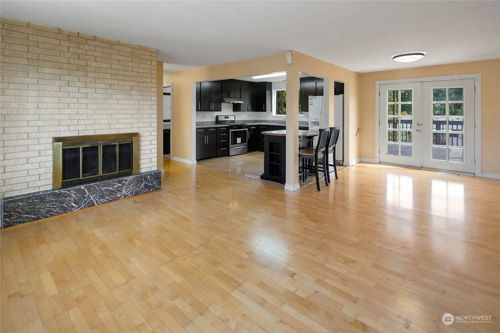 Attractive, comfortable home in highly desired location. Needs your vision, time and talent. Versatile, flexible popular floorplan meets your varied lifestyle, From everyday living, to private relaxing moments, to entertaining small groups and larger gatherings, this home gives you the options you deserve. Light and bright living room, opens to the roomy kitchen with eating bar/island. Dining area wtih french doors leads to the 400+ sq ft covered deck for near year round use. Downstairs is a large family room, bedroom and 3/4 bath. Large partially fenced backyard has space for fun, a garden or hobbies. Plenty of off street parking for residents or guests. Convenient to shopping, schools, parks, freeways.