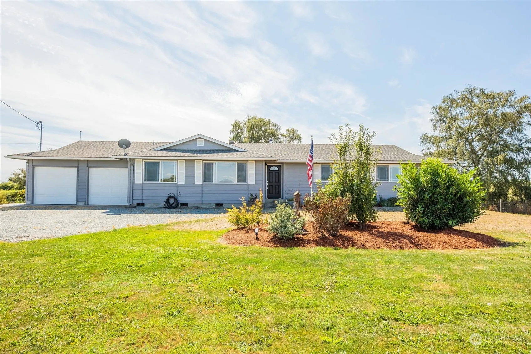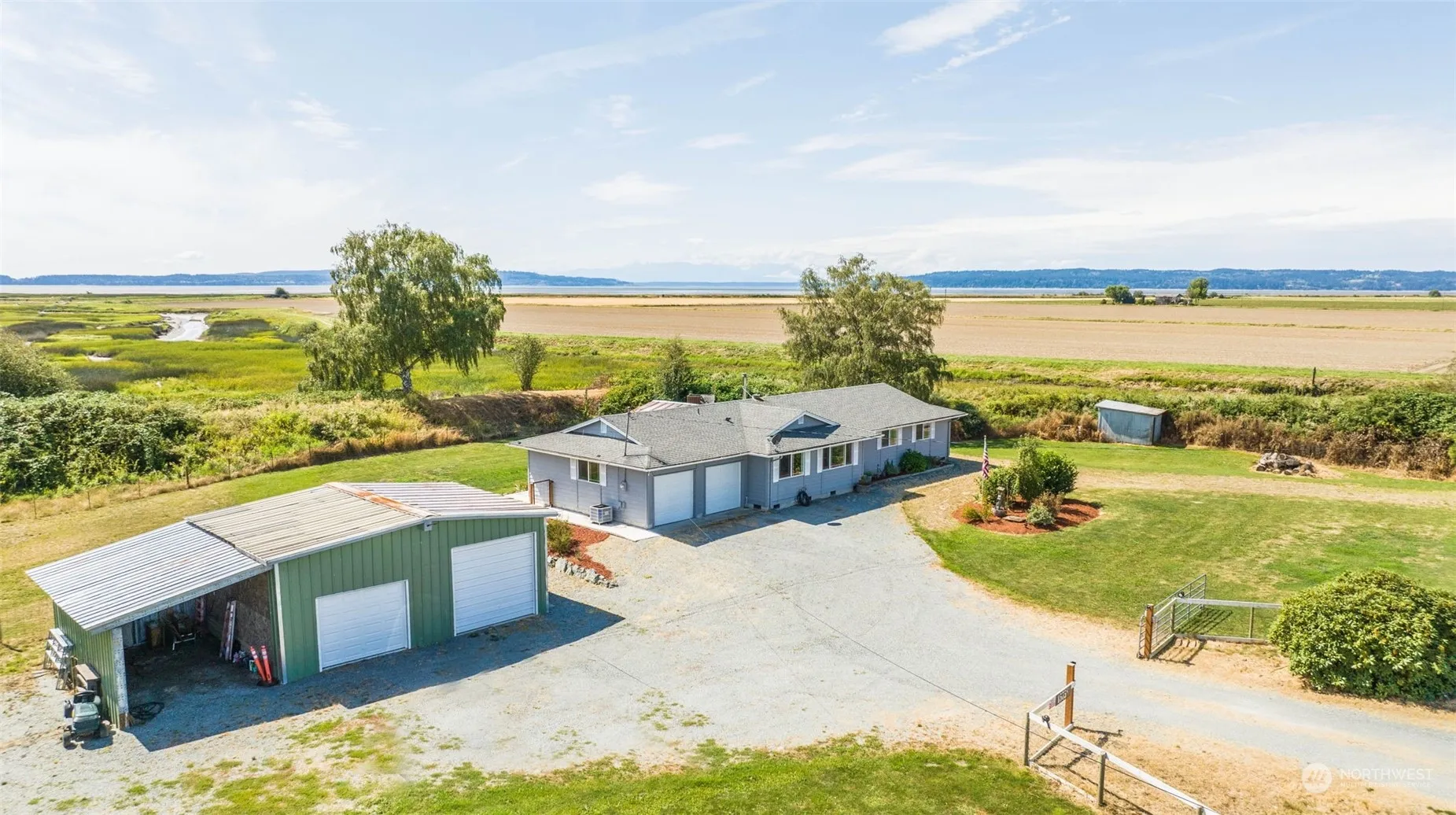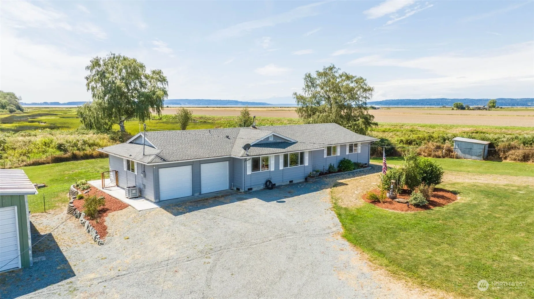 Beautifully updated RAMBLER on 2.8 ACRES with a detached 28’X30′ SHOP and 14’X20′ CARPORT! Located on Fir Island and surrounded by VIEWS of water, mountains and farmland! This 3-bedroom, 2-bath home features an updated kitchen with quartz countertops, tile backsplash and SS appliances. Open floor plan with 2 living spaces; one with wood stove, large dining room and tastefully renovated bathrooms. Newer windows, interior paint and trim and luxury vinyl plank floors throughout. Fully fenced property with secure access gate and covered back deck perfect for entertaining! New septic system, HEAT PUMP and lots of RV parking! Come enjoy the beauty of the Skagit Valley! One-year home WARRANTY included!