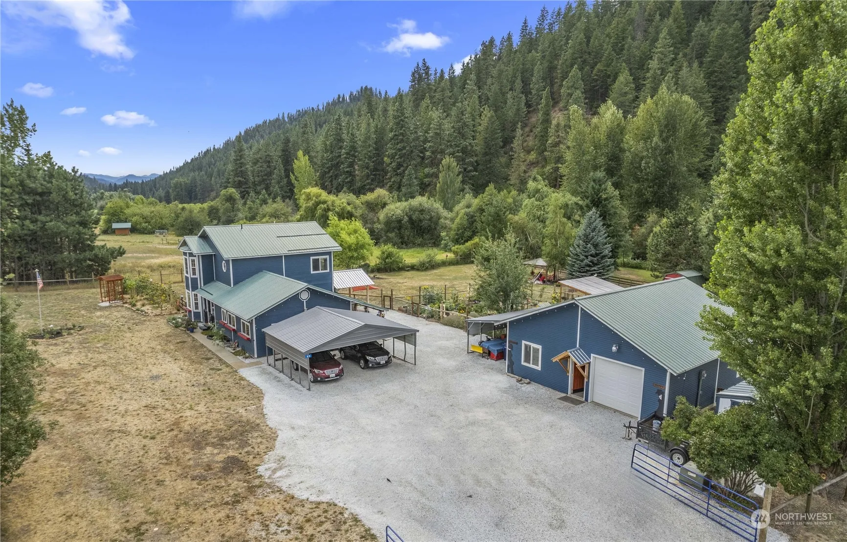 Come to your tranquil retreat in the country. Located on 3+ ACRES bounded by Chumstick Creek; offering so much space and many ways to use it. The welcoming 3BR 2BA 2 story 2340 sq ft home has been extensively updated, beautifully decorated, and maintained for both indoor and outdoor living. The shop space has a large work area, ¾ bath, kitchen, and bonus area. Outside has 2 outbuildings plus shed with electricity for studio or gardening use. Numerous gathering areas are lit at night for dining and parties. This home has been truly loved and cared for, which shows everywhere you look. A professional inspection has been completed and a list of upgrades is available upon request. This home is a must-see.