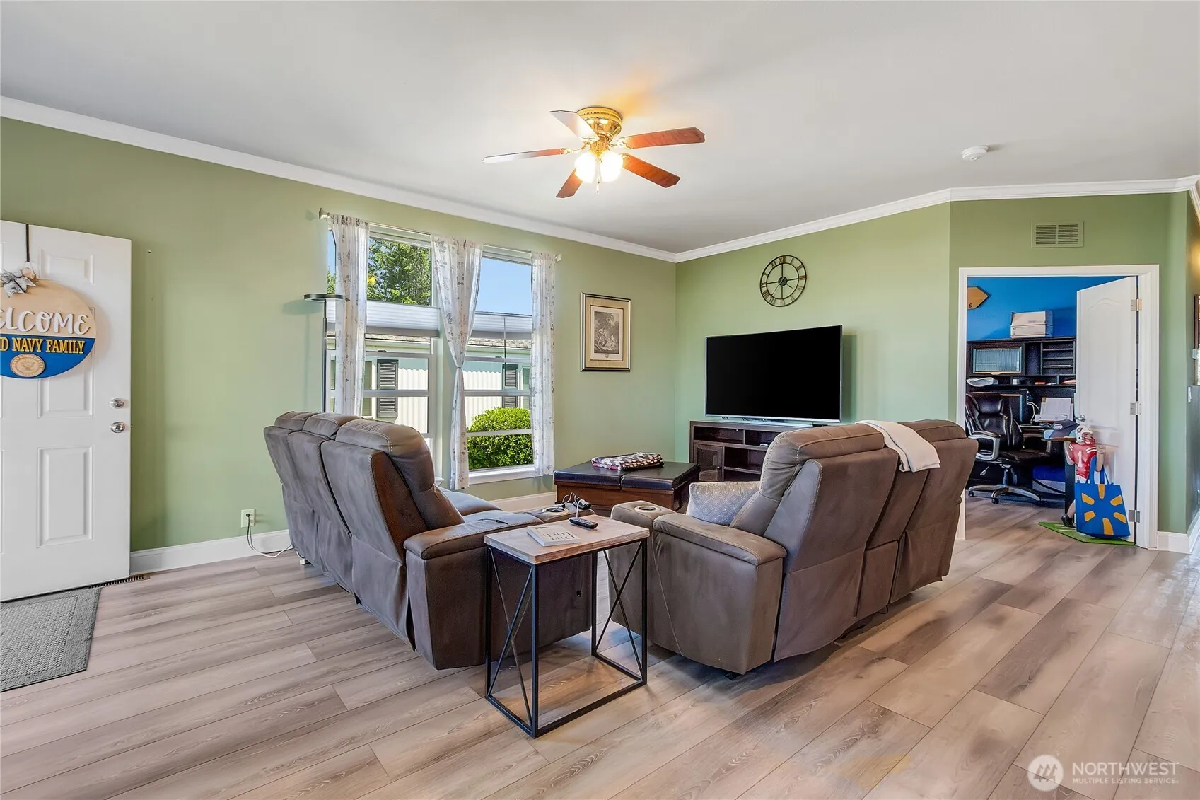 Welcome to this beautifully updated home in Enumclaw’s desirable 55+ community, Mountain Villa Estates. Built in 2015, this well cared-for 2-bedroom, 1.75-bath home features new vinyl plank flooring throughout. Large great room flows into a comfortable dining room & a remodeled kitchen, boasting custom cabinetry with pullouts, sleek quartz countertops, new appliances, & spacious island with seating. Primary suite has a wood-accent wall, 3/4 bath, & walk-in closet. 2nd bedroom has a Murphy Bed & walk-in closet. Versatile office space with room for two desks. Enjoy the outdoors on the covered cozy front porch. Utility room with access to a large two-car carport & 2 storage sheds. Conveniently located near shopping, downtown and recreation.