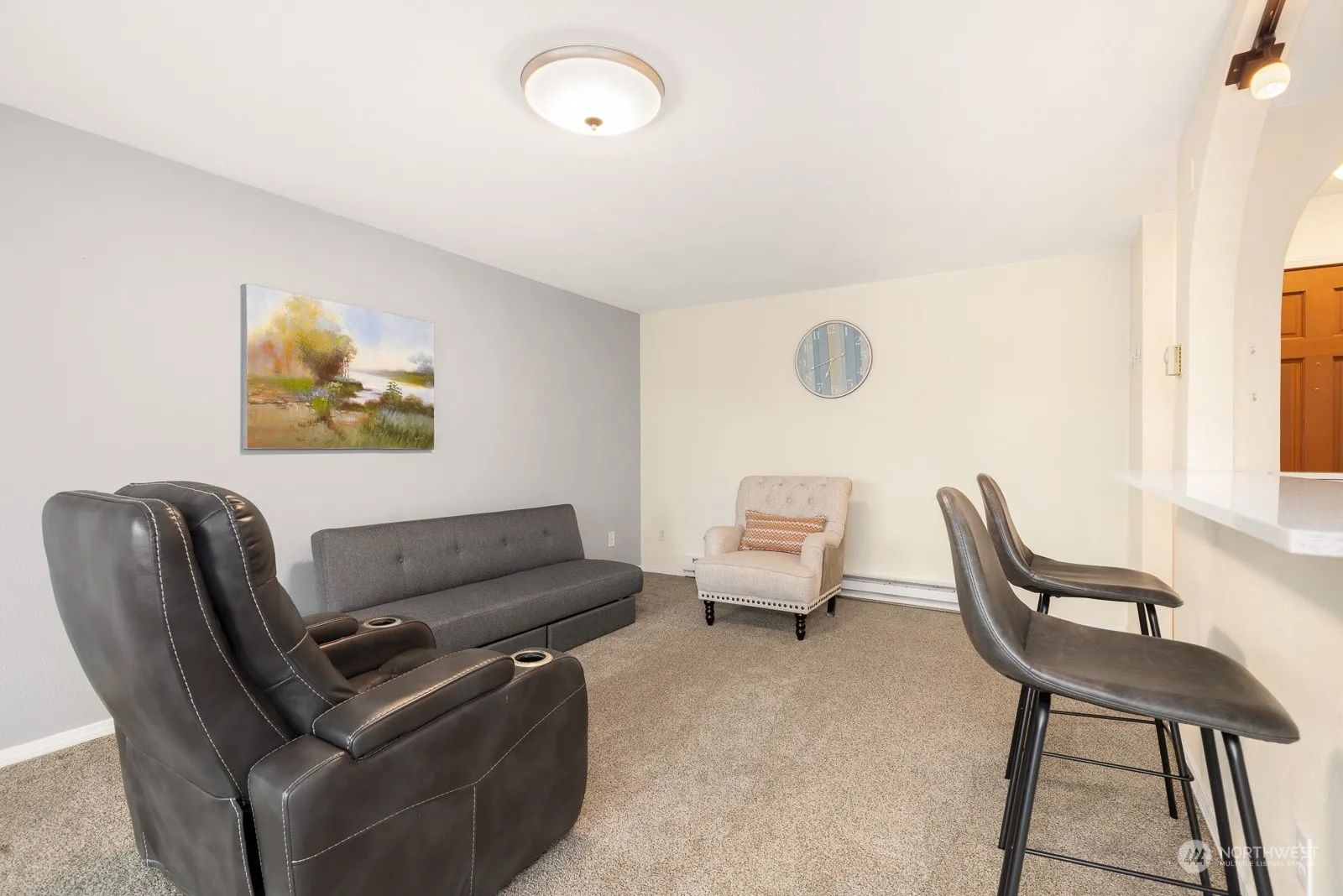 Welcome to this charming condo in the desirable Canyon Estates. This top-floor unit welcomes you with an open, bright living space featuring large windows that flood the home with natural light. The modern kitchen features stainless steel appliances, updated cabinetry, and quartz countertops. Adjacent to the kitchen is a cozy dining area, perfect for intimate meals. Both bedrooms are generously sized, and the primary bedroom boasts ample closet space. The bathroom is well-maintained, featuring sleek finishes. Community amenities include an outdoor pool, clubhouse, and scenic walking trails, providing leisure right at your doorstep. This home offers a blend of comfort and convenience just minutes from everything you need.