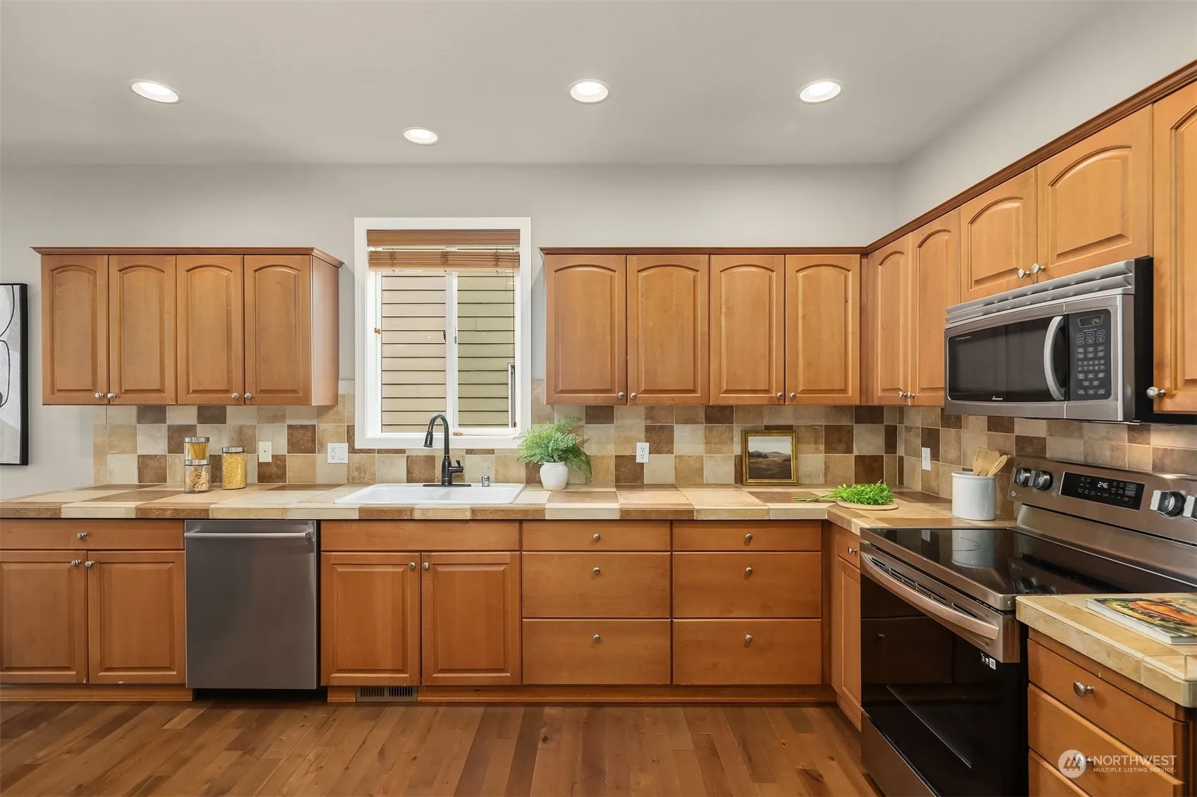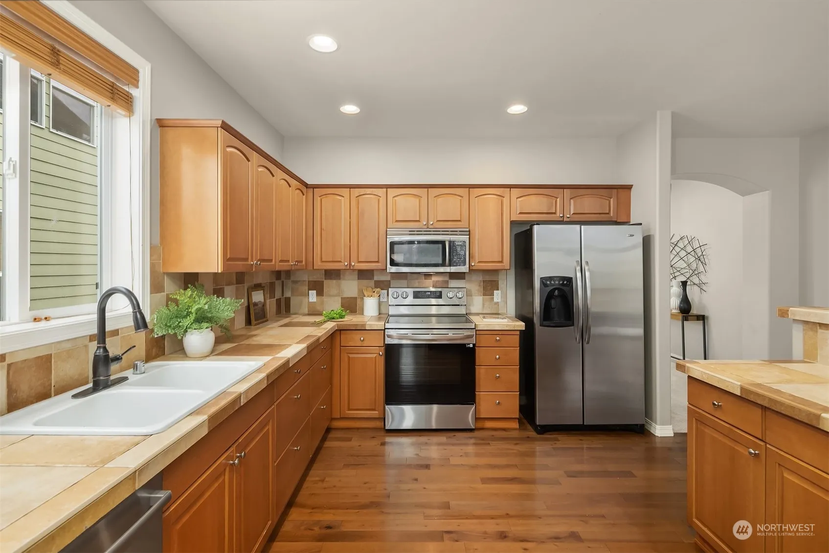 Turn-key home in the Valley Crest neighborhood of Maple Valley. Main level spaces live open concept. Great rm seamlessly connects to kitchen & dining areas. Massive kitchen with S/S appliances, pantry, designer tile accents and an island w/ bar seating. Dining room is stately w/ designer lighting and wainscoting. Upper level features an open loft, ideal for work-from-home set-up. Primary bedroom has spa-like BA suite w/ sunken tub, dual vanities, walk-in shower & walk-in closet. 3 additional secondary bedrooms and utility room complete upper level. Fully fenced backyard w/ garden spaces, shed, hot tub, & covered patio w/ porch swing.2 car garage, w/ 3rd tandem spot converted into finished space. Located in Tahoma SD. Walk to trails + parks.