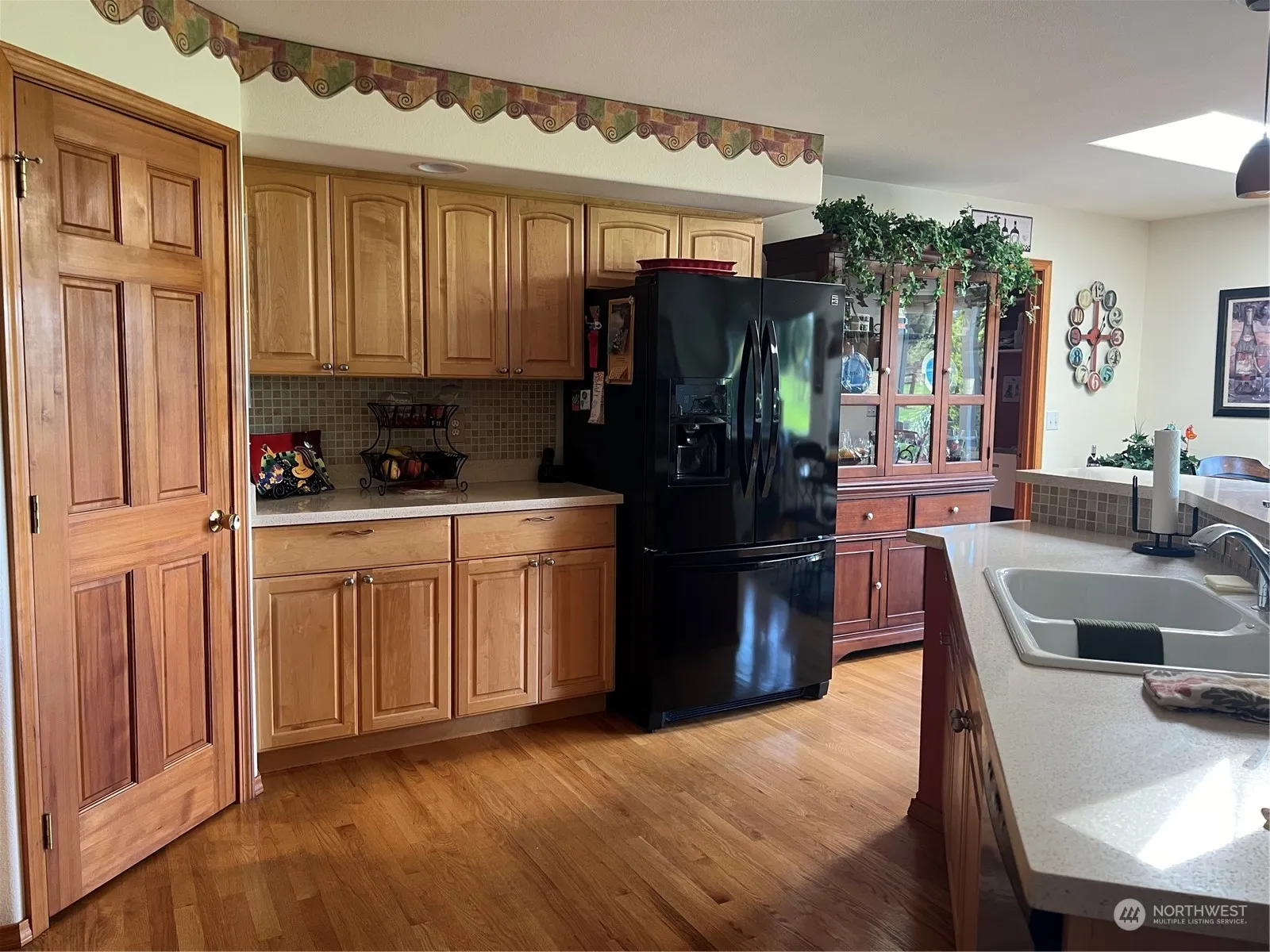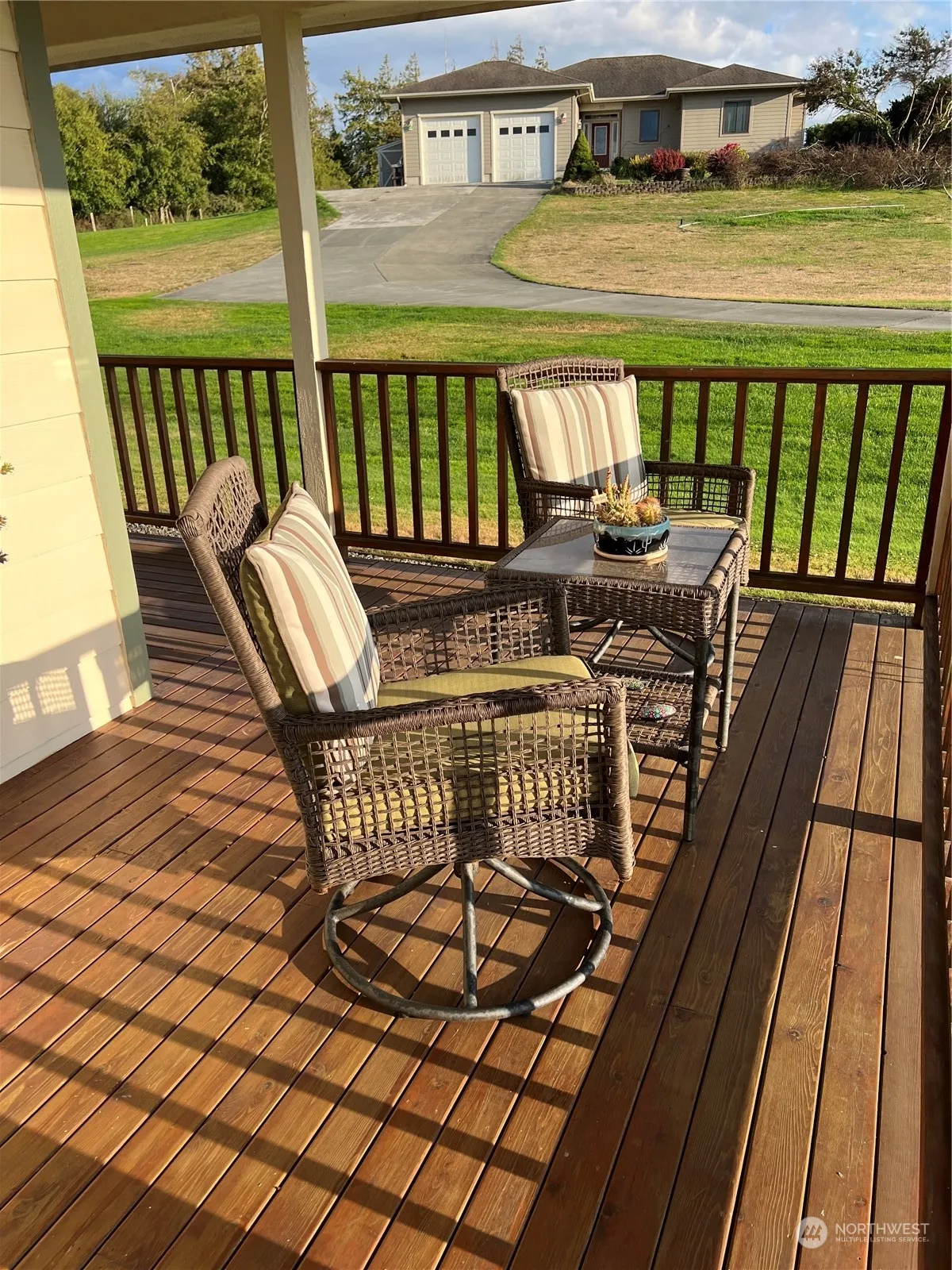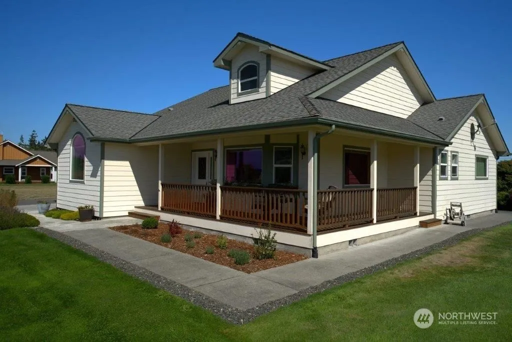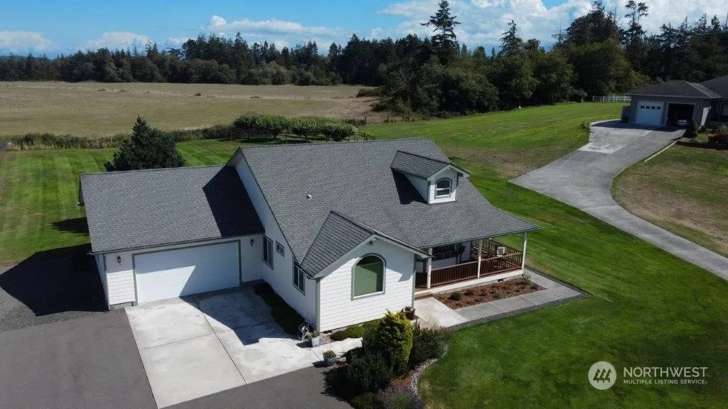 This lovely 3-bedroom home sits on 1.03 acre. 1732 well-appointed sq. ft. A large covered front porch and window boxes to enjoy your morning coffee & a deck off the back of the home to enjoy the well manicured grounds and fenced Orchard. An inviting entry with hardwood flooring. The formal living area faces the front of the home & has an electric fireplace. 2 additional bd. Rms. And a private primary with ensuite & double vanity. The kitchen, dining and family room are open, an island kitchen, breakfast bar & skylights, 2nd electric fireplace, double ovens and walk in pantry. The laundry room Also features a deep sink. The oversized garage is great for storage and all of your toys. Cline irrigation.
