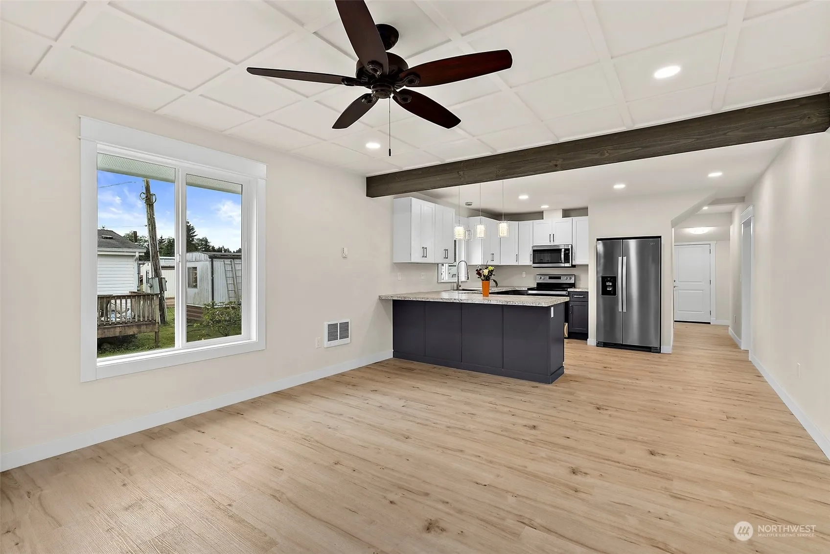 Discover this beautifully remodeled 3 bed, 1.75 bath home, where charm & modern convenience meet. Step onto the inviting covered front porch & into a bright, open floor plan that welcomes you with warmth & style. The modern kitchen is a chef’s delight, featuring a sleek breakfast bar & stainless steel appliances. The primary bedroom offers a peaceful retreat, complete with a 3/4 bathroom adding to the home’s functionality. A convenient full guest bathroom includes a shower/tub combo & built-in storage for all your essentials. Upstairs, a large bedroom provides a private haven, ideal for guests, a home office, or a cozy escape. Situated on a spacious level lot, this home offers ample outdoor space for gardening, play, or relaxation.