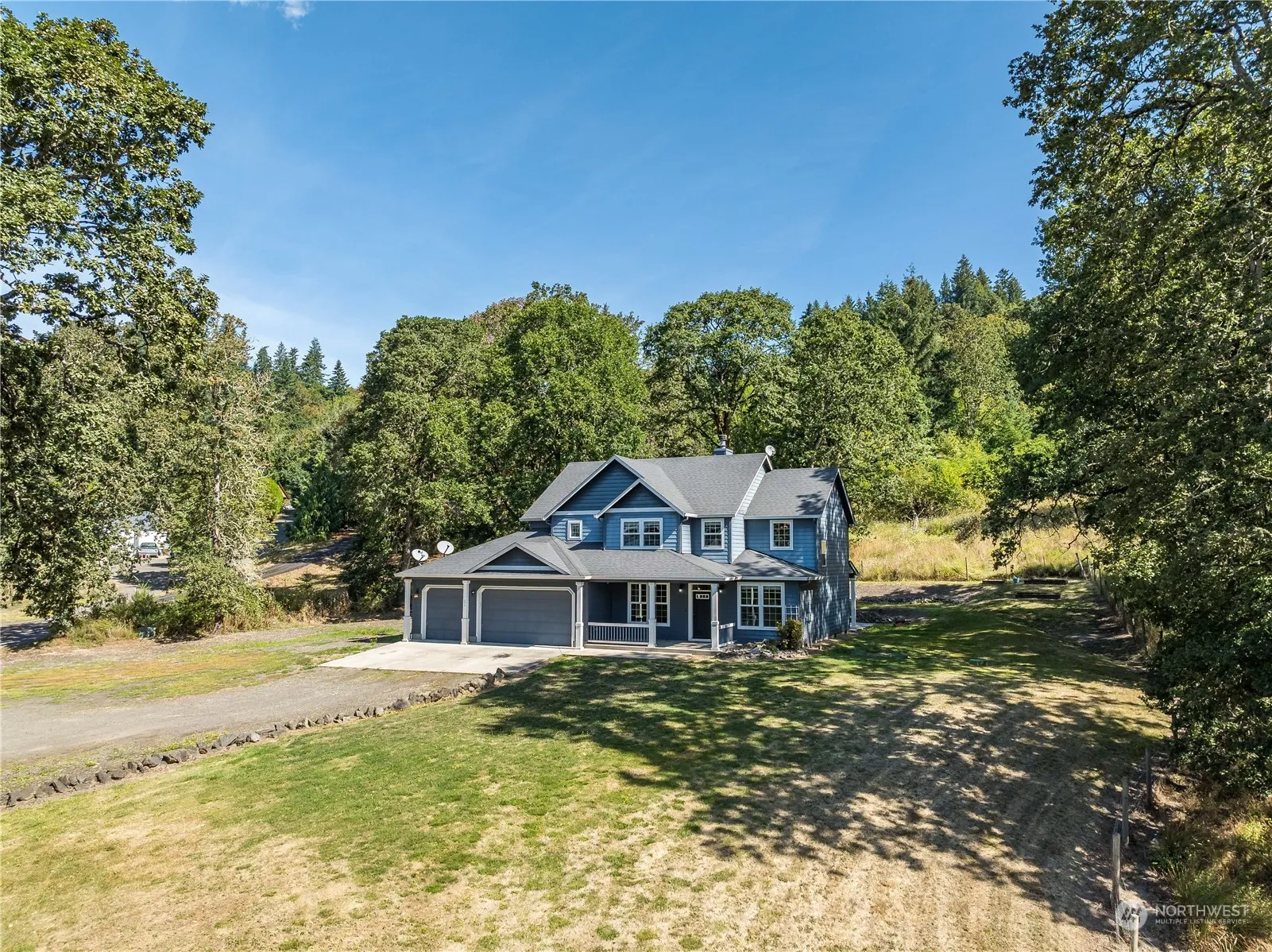 Come see this rambling two story country home just minutes to I5 yet tucked away in a peaceful setting surrounded by majestic oak trees. NO HOA, NO CCRS. Two usable acres with 1.5+/- acre fenced pasture. Great spot for shop on N. side of home & possibility for ADU-check with county. Great covered front porch & lap concrete siding plus 3 car garage. Back yard offers large concrete patio for relaxing/BBQ’s. Interior includes formal dining room, 2 sided FP & den/office could be 4th bedroom. Open concept kitchen/living. Granite counters & eating bar. All stainless kitchen appliances included & newer heat pump. Upstairs is a huge bonus room plus primary w/jetted tub & WI shower. Additional full bath & 2 more bedrooms.