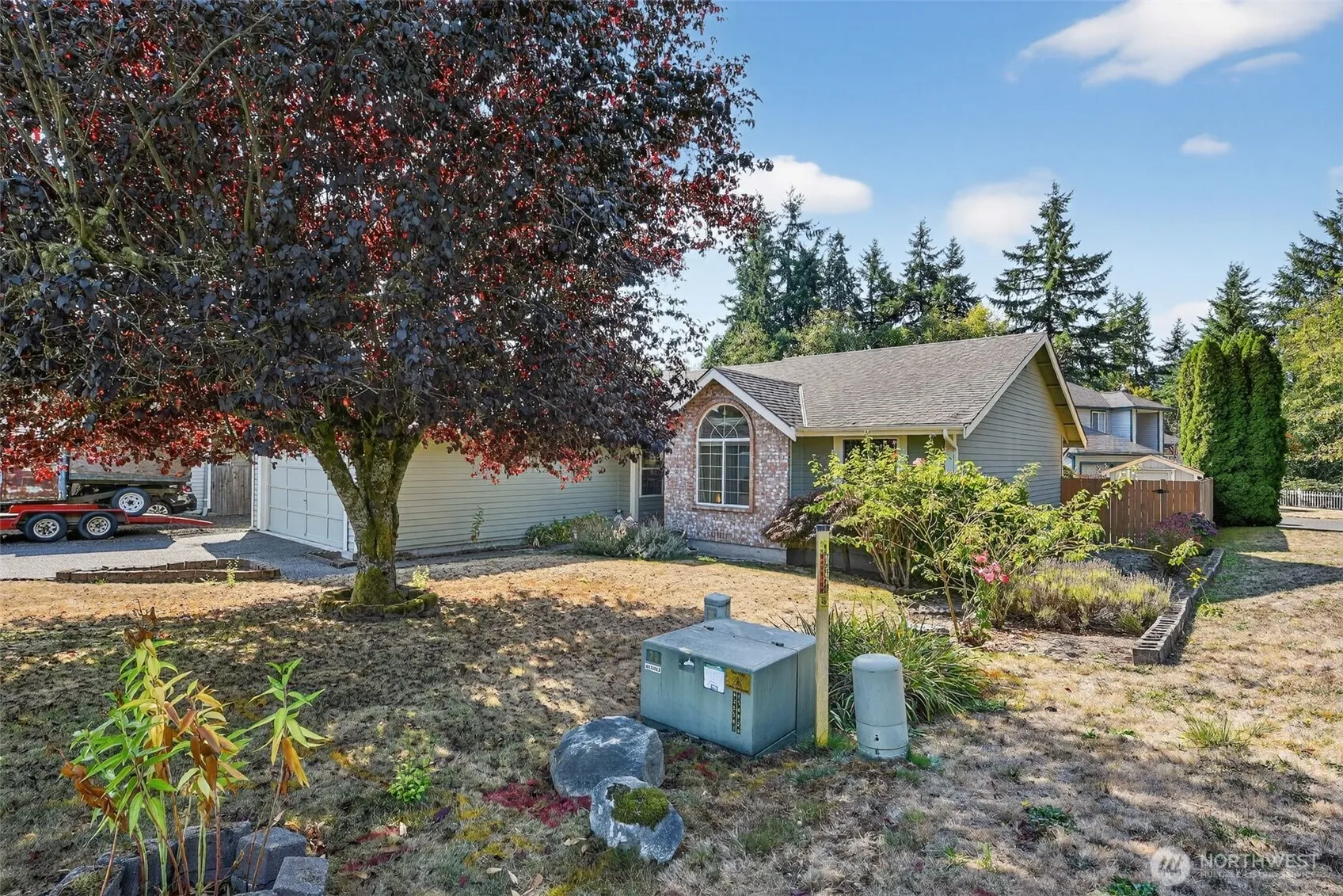 Charming home in Silverdale’s Ridgetop neighborhood, tucked away on a quiet dead-end street. Enjoy a cozy wood-burning fireplace, back deck with motorized sun shade, an accessible shower, and an 8×12 shed for extra storage. The fully fenced yard, spacious interior, attached garage, and large lot provide plenty of room to relax and entertain. Conveniently located just minutes from Island Lake and Park, nestled between Liberty Bay and Dyes Inlet, and close to shopping. The ideal blend of comfort, utility, and location—don’t miss this one!