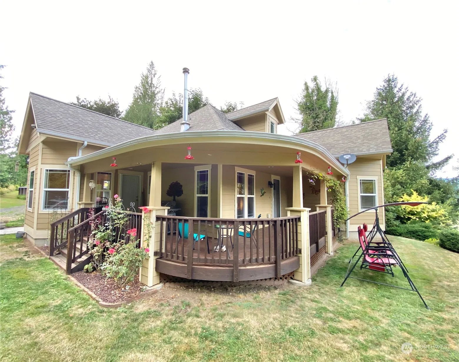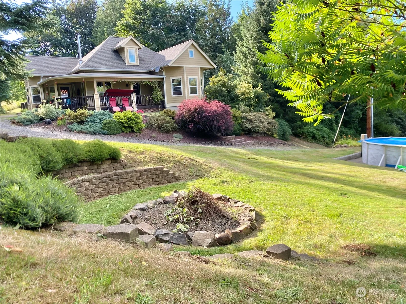 NEW PRICE! Perched above Mossyrock at the end of a dead-end road, this 1 story home is unrivaled in terms of privacy, landscaping and wildlife. Owners meticulous w/ maint. Sip your coffee from your covered, wrap-around deck while watching deer and other critters meander through nature. Later, soak in the hot tub while you unwind w/ a drink. The 20′ sun-setter retractable awning has you covered in rain and full sun. Sellers previously raised cattle in hilly area on southern end of the property. Grow a garden and be self-sufficient w/ 36 solar panels. Large shop with 3 bays, one w/ ventilation for painting, compressor stays. 2nd elec service at pool (for mobile home), natural spring with gravity fed cistern and 10′ ceilings in home! Call now!