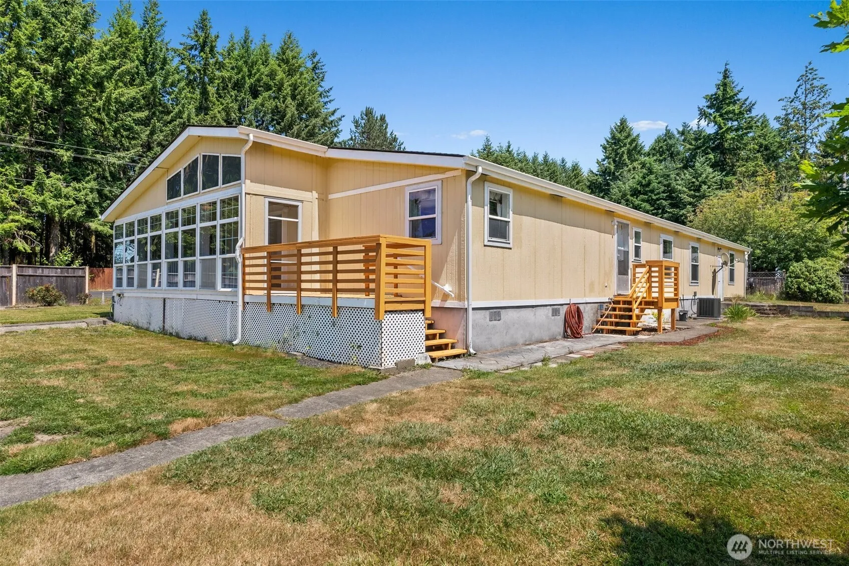 Spacious 2400 sq. ft. home. Vaulted ceilings, open floor plan design. 2 bedrooms w/ walk-in closets, a bonus room and home office. The home also has a newer roof, new gutters and a new heat pump, also features a newer remodeled kitchen with wonderful soft close/pull-out cabinets. New window treatments. The Primary bedroom with partially remodeled ensuite. Relax in the sun porch and enjoy amazing sunsets. Paved driveway. Sidewalks all around. 2-car carport w/shop and room for the RV parking and a storage shed. Gorgeous back yard with a variety of fruit trees. Landscaped 1.26-acres w/ footbridge over seasonal stream in back. Seller credit $5K with accepted offer. Preferred lender credit $2K = $7K.