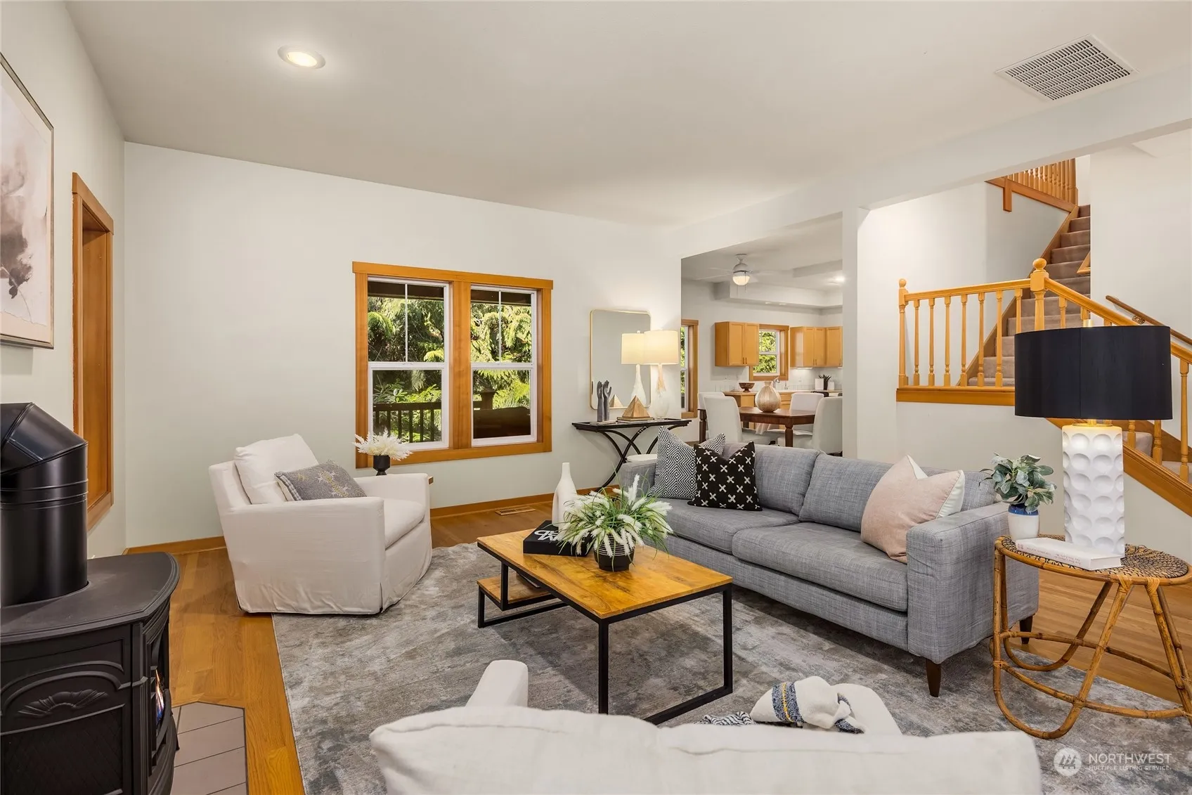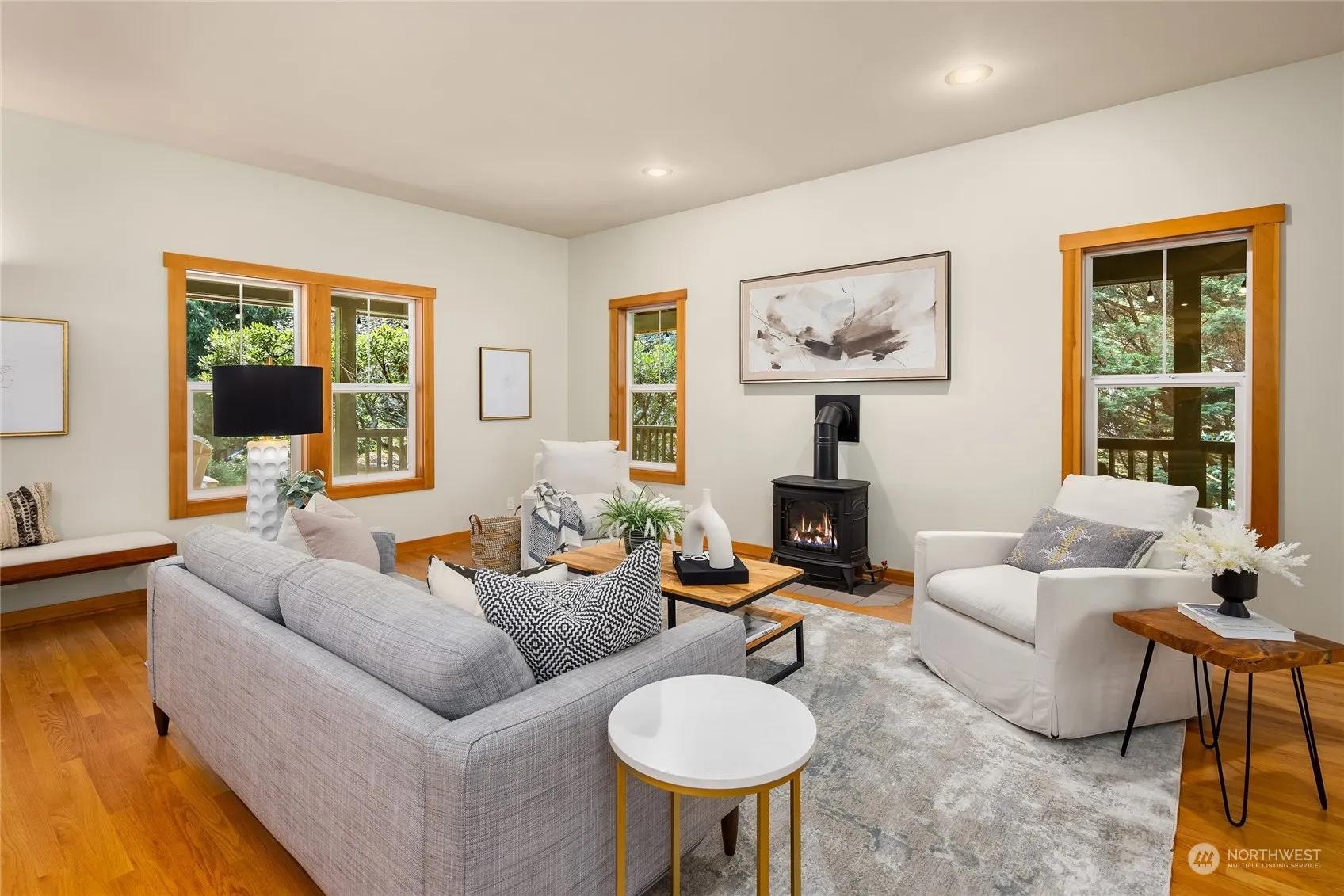 New price reduction- Bring offer! Beautifully built Craftsman style home sited on shy-acre. Close to Blakely Elementary School, this home is a world away from from any busy streets, yet close to Pleasant Beach and Lynwood Center community amenities. Just 1/2 block away from the bus directly to the ferry terminal! This quality wood shingled home welcomes you with a large wrap-around deck and seasonal gardens. The generous sized living room has hardwood floors and a free-standing stove for cozy evenings. The kitchen and dining are open to the large deck for outdoor dining and relaxing. Three bedrooms are located on the upper level, with a large primary suite with vaulted ceilings. A large bonus room and office round out the great floor plan