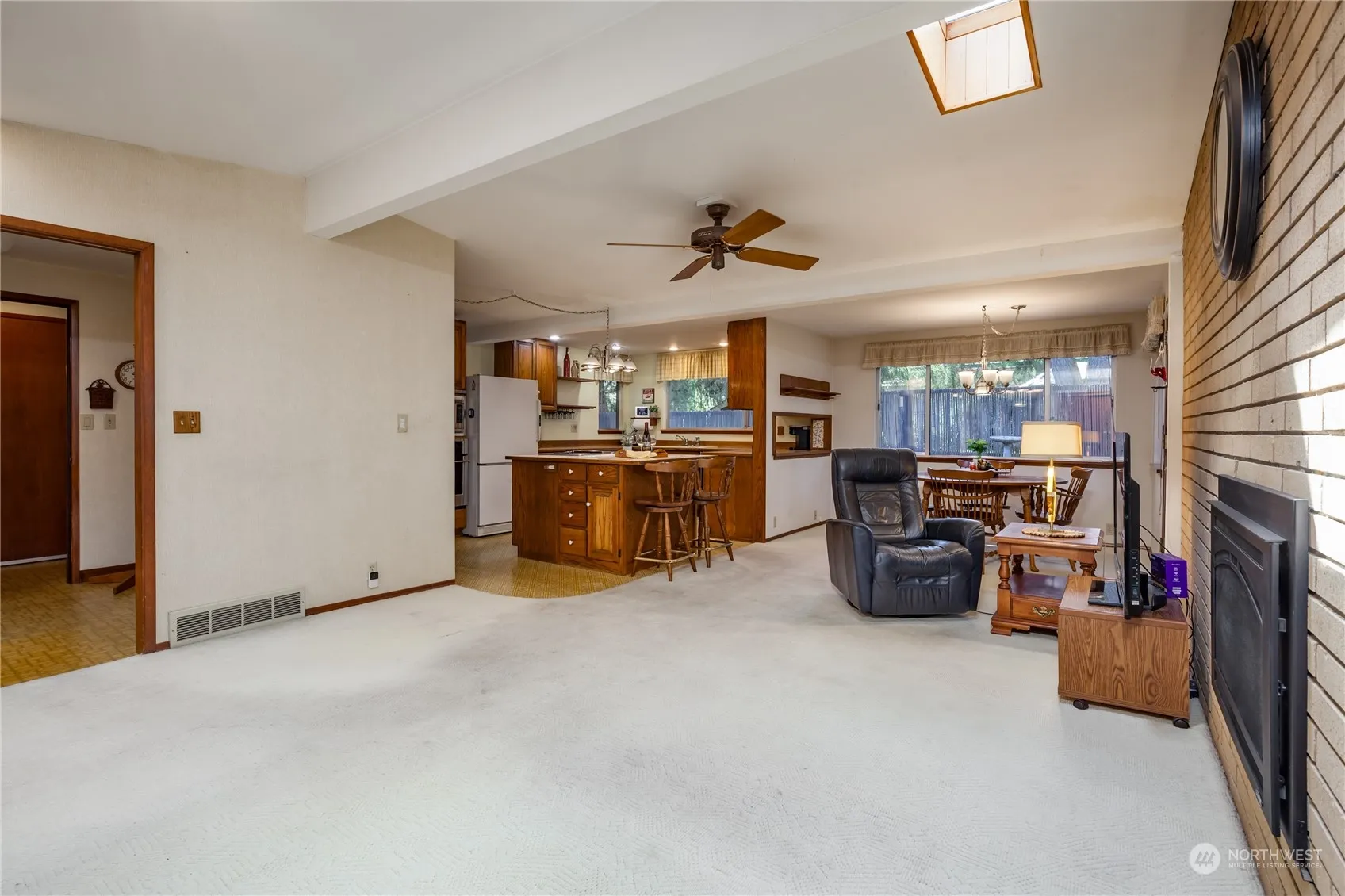 This wonderful home lives like a rambler with all the essentials on the main floor & huge rec room above the garage. You’ll appreciate the spacious kitchen with great storage & center island overlooking the family room with its gas fireplace & bright skylight. Formal living room just off the entry. Primary bedroom features dual closets & private 3/4 bath. Two more bedrooms & full bath down the hall. Large yard with garden shed gives ample room to play or relax in a nice mix of sun & shade. The heat pump & central A/C will keep you comfortable year-round, and the brand new septic system will give you peace of mind. In an excellent location on a dead end street close to transit, airport, shopping, restaurants & more, don’t miss this one!