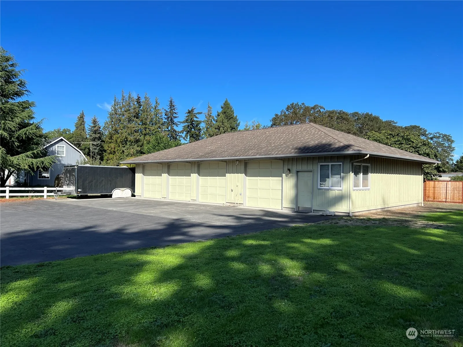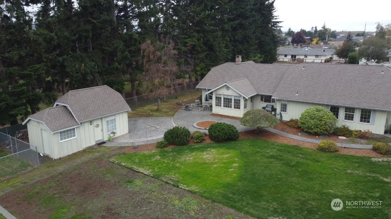 Sale failed no fault of seller, buyer had cold feet. inspections all completed and available. This property is a great find in the heart of Sequim, one level, 3 bedrooms, family room, double fireplace, circular Drive, one acre. 50 year roof, private well, & an amazing detached 4 bay garage and workshop over 2000 sq. ft. and an attached garage of 660 sq. ft. Also features a cottage with a half bath. This home is in the county. A large island kitchen and dining open to a nice family room The primary bedroom is huge with double closets and large on suite. A large garden space located in the back of the home. The little cottage is a wonderful flex space.