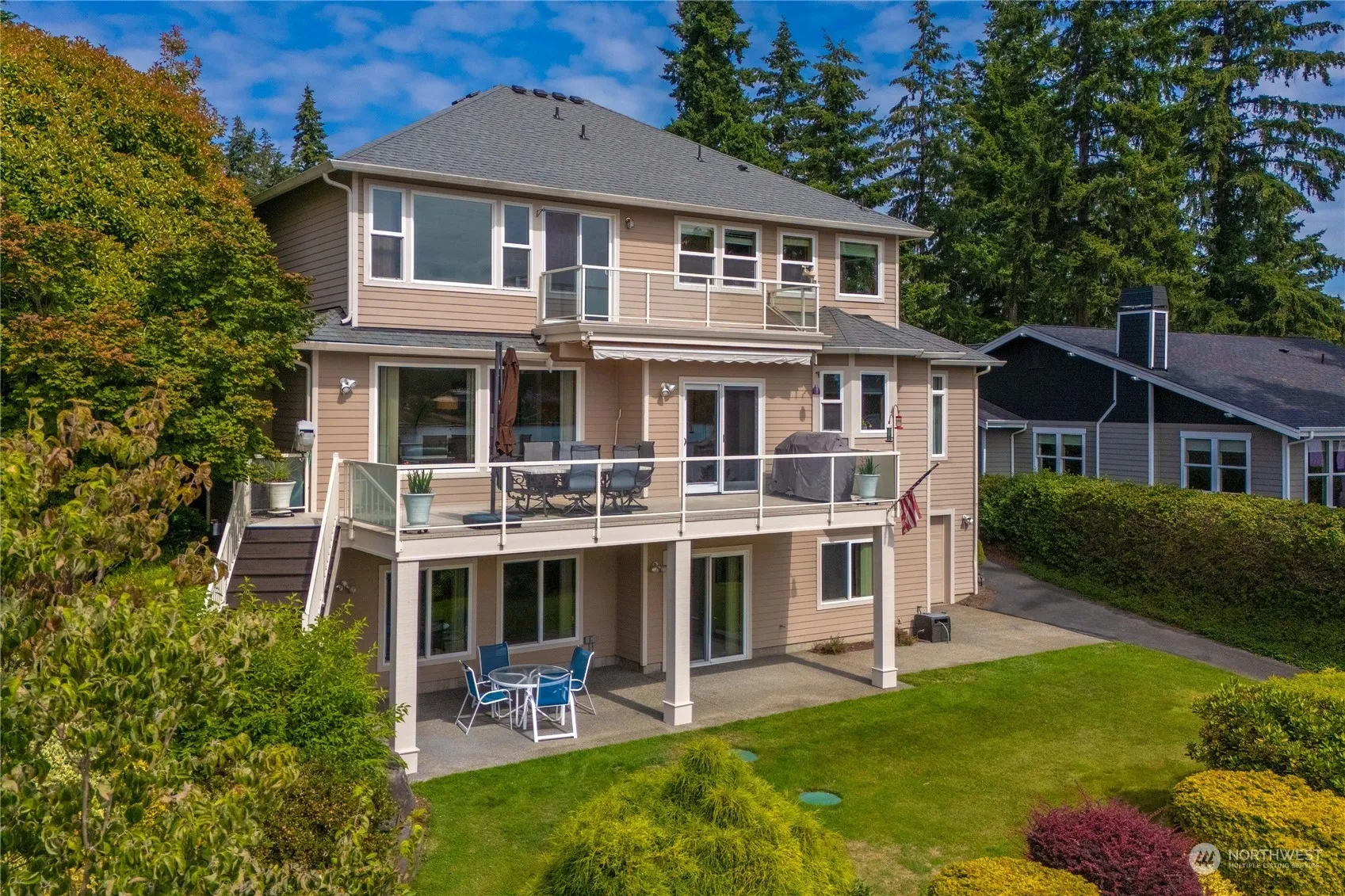Welcome to this exquisite 4,012 sq ft custom home on an estate-sized .57-acre lot. This timeless 3-bedroom residence features a main floor office, with a versatile bonus rm/4th bedroom, & second office on the main. The living & dining rooms feature vaulted ceilings & amazing views of the lake. Oversized entertaining decks off the kitchen & primary suite provide the perfect setting relaxing & entertaining. The property boasts an attached 4-car garage & a detached oversized 2-car garage. There is a 340 sq ft unfinished garage in the basement with a garage door leading to the rear yard offering ideal storage for all your lake toys. Well-maintained covered dock & solar boat lift. Roof is 2 years old. Dieringer Schools District.