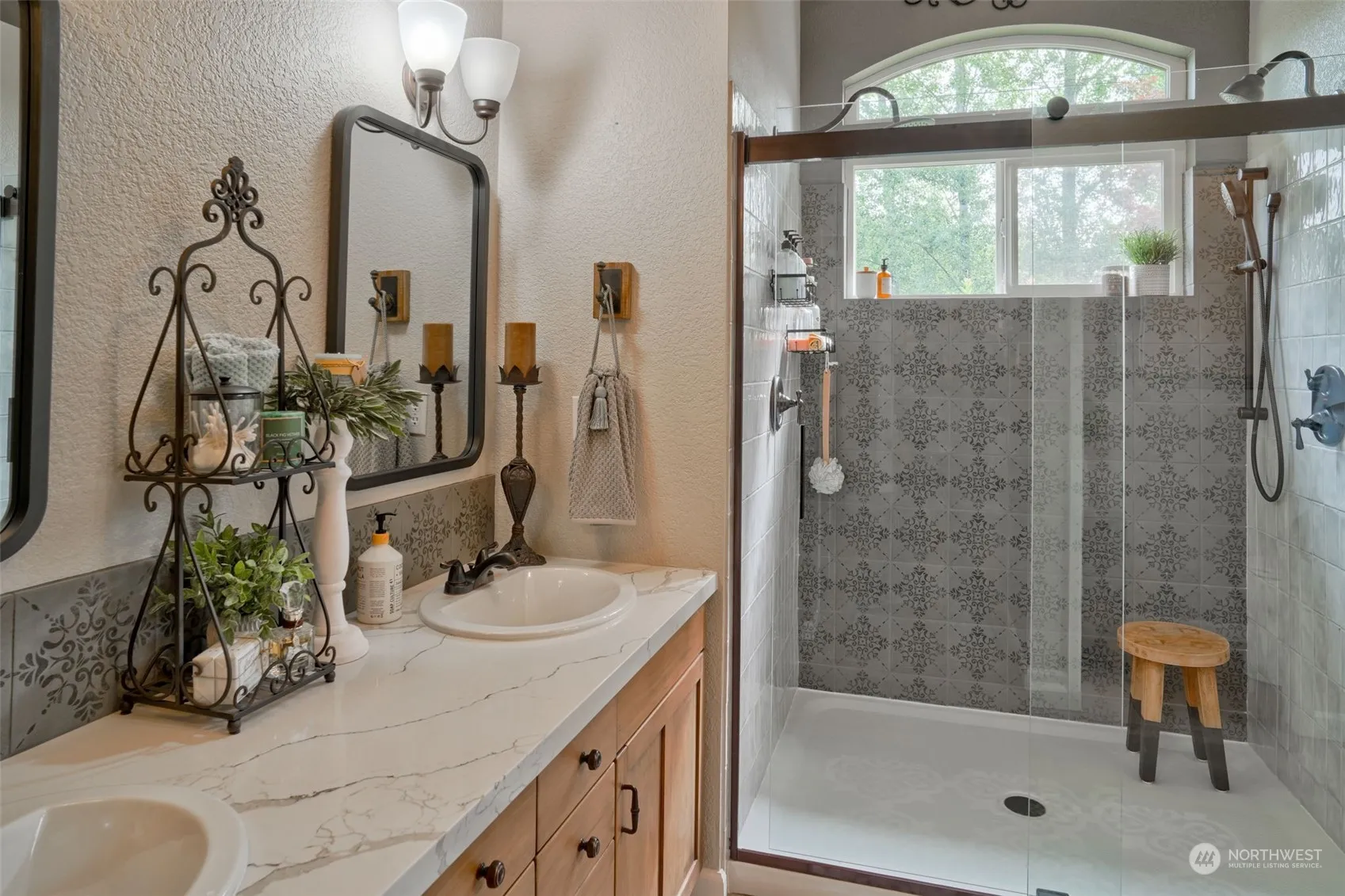 Step into this stunning 2,475 sq ft home on 5 acres in Rochester, WA, conveniently situated 1.25 hours from Seattle and 1.5 hours from Portland. This property offers 4 bedrooms, 3 baths, high ceilings, and quartz countertops installed in 2023 for a modern touch. Enjoy features like a custom walk-in shower in the primary bath, a hot water circulating system for instant access, and 220V in the garage. Outdoors, a covered deck, cobblestone patio, and fenced garden with raised beds enhance the peaceful setting. Ideal for those seeking comfort and convenience with proximity to major cities. A unique opportunity in the Pacific Northwest.