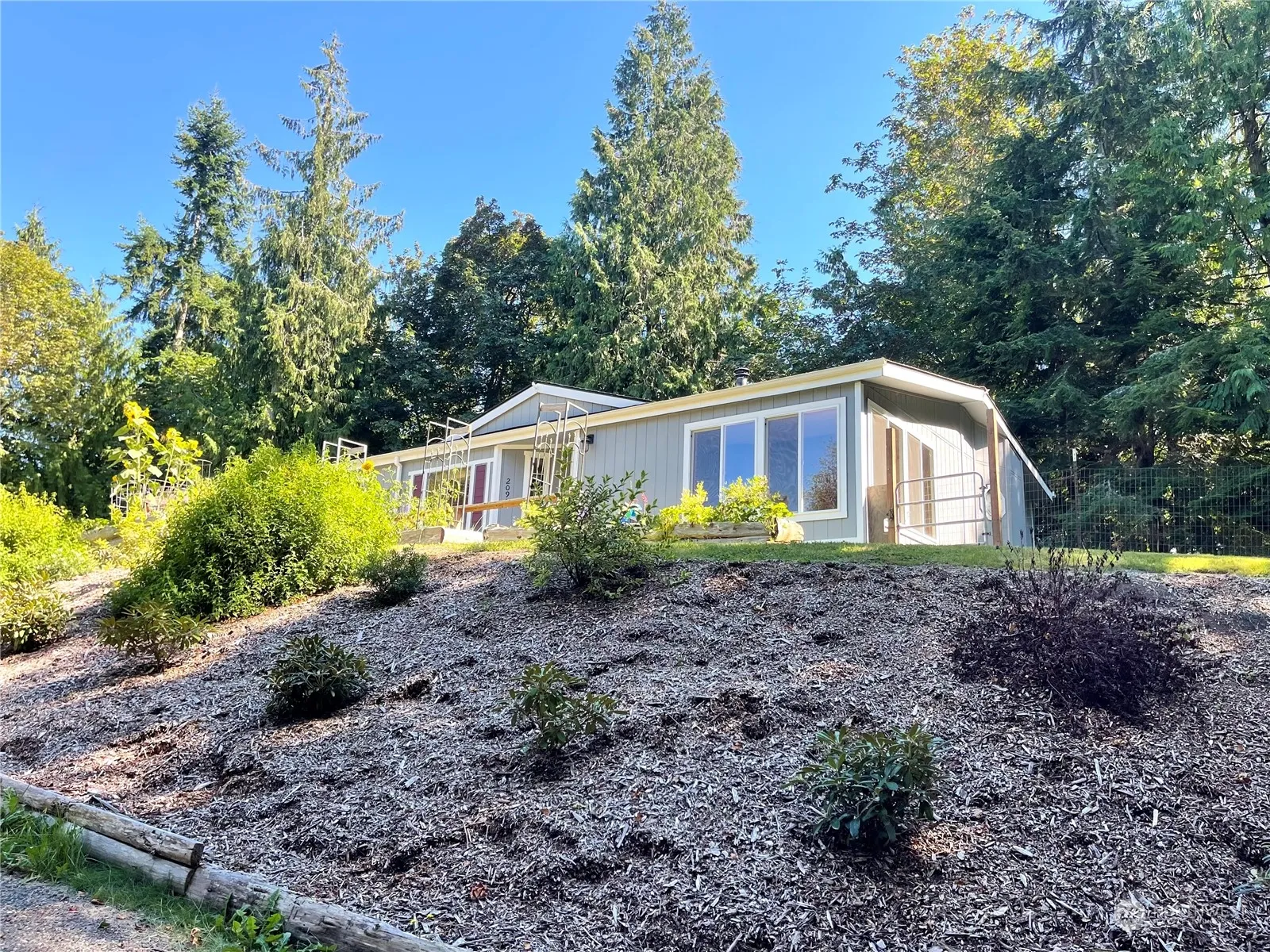 Motivated Seller! Beautifully set at the top of the driveway like an eagles nest looking out over the domain. Natural filled light within this spacious home and is move in ready! Enter into the livingroom with new wood stove and tile entry. Formal dining room then the kitchen with new range w/air frier, newer appliances and such a comfortable feeling home. the family room is past the kitchen and there is room to roam here! 3 bdrms, guest bath nicely tiled with walk-in shower. Utility room and plenty of pantry/storage.New architectural roof and skylights, new deck, 16×20 shed and carport. Along side that is room for a garage. Fenced back yard and landscaped for low maintenance. New pump house and water pump. Garden and wood shed as well.