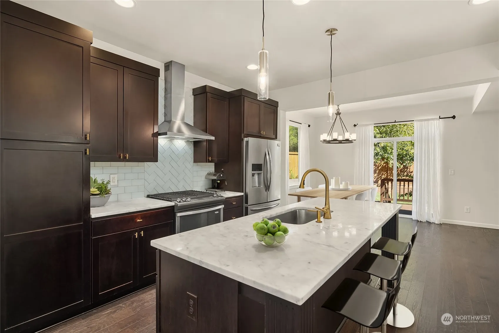 This stunning residence,not a townhome,offers territorial & mountain views that will leave you in awe.Inside you will discover a light-filled, open floor plan,elegant hardwood floors & cozy gas fireplace.Dining room has a charming niche for your favorite hutch,private backyard w/a deck & terraced lawn,an entertainer’s dream.Culinary enthusiasts will love the chef’s kitchen,equipped w/SS appliances,marble countertops,full-height backsplash & spacious center island w/an eating bar.Primary bedroom a personal oasis,featuring a walk-in closet & an en suite bath includes a dual sink vanity,oversized shower & a skylight a touch of luxury. Add: amenities include 2-car attached garage & prime location close to parks, Snoqualmie Falls, trails & more.