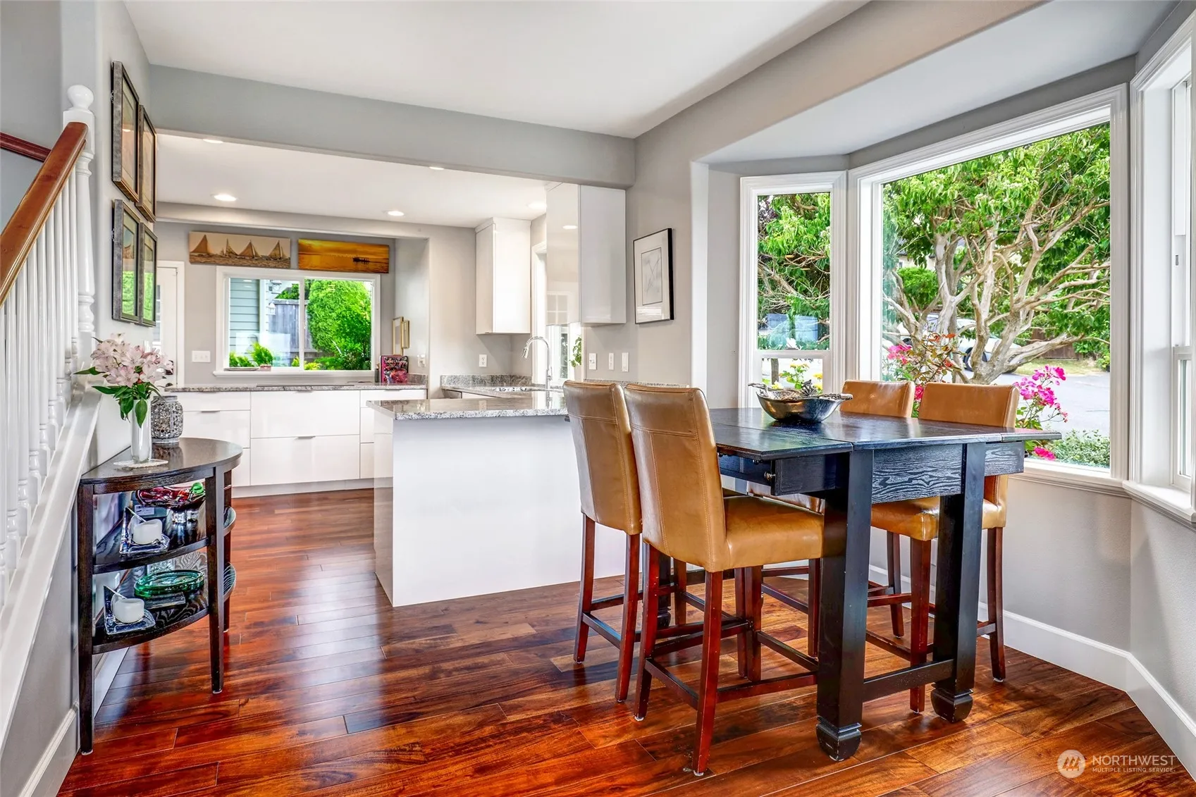 On a sizeable corner lot, just a short distance from the Richmond Beach amenities, this unique and flexible home wows with panoramic sound + mountain views and jewel-box gardens. Opportunities abound: main house has 3 beds/baths (one per floor), plus 1 bed/bath in the 510 sf detached ADU apartment off the garage. The streetfront lower level, with its own entry and circular drive, currently used as a separate apartment, could become your epic rec-room, or workspace to receive clients with privacy from main living area. Over $240K in quality upgrades since 2022, including all-new chef’s kitchen, cherry + acacia hardwoods, automated blinds, covered deck, primary suite renovation, + upgraded elec.panel. Solar panels for savings and efficiency.