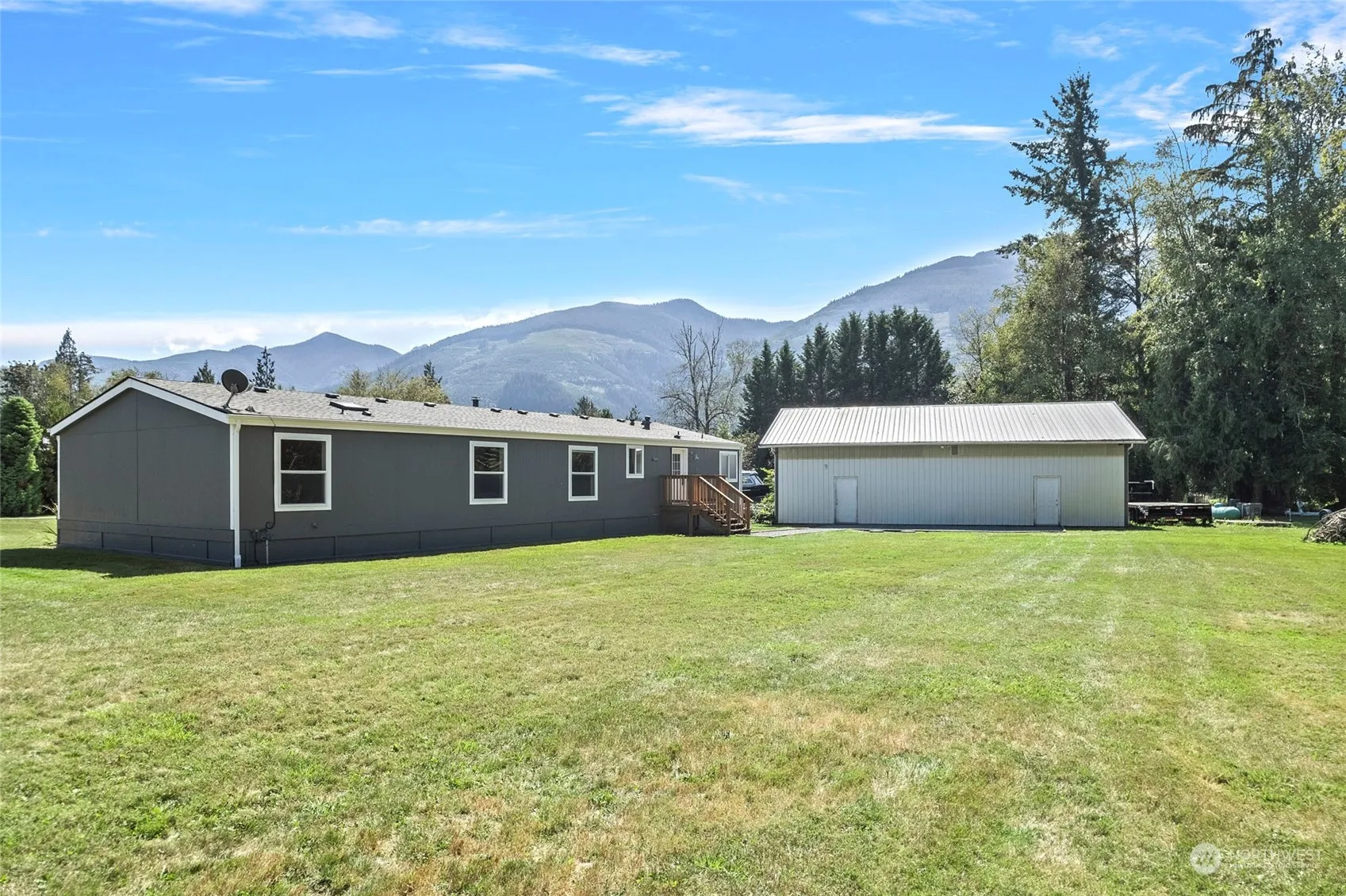 Welcome to Birdsview! Country living at its finest. 8.86 level acres with panoramic views of surrounding mountains. 1836 sq. ft. double wide home with 4 bedrooms and 2 baths. 36 x 48 shop with 4-10’ft doors. Newer roof, New gutters and fresh exterior paint. Bring your own ideas for the interior, needs paint, floor coverings and minor repair. Private high producing well. Nestled in a private setting among similar type homes. Close to Rasar state park, Baker Lake and many other outdoor recreation opportunities.