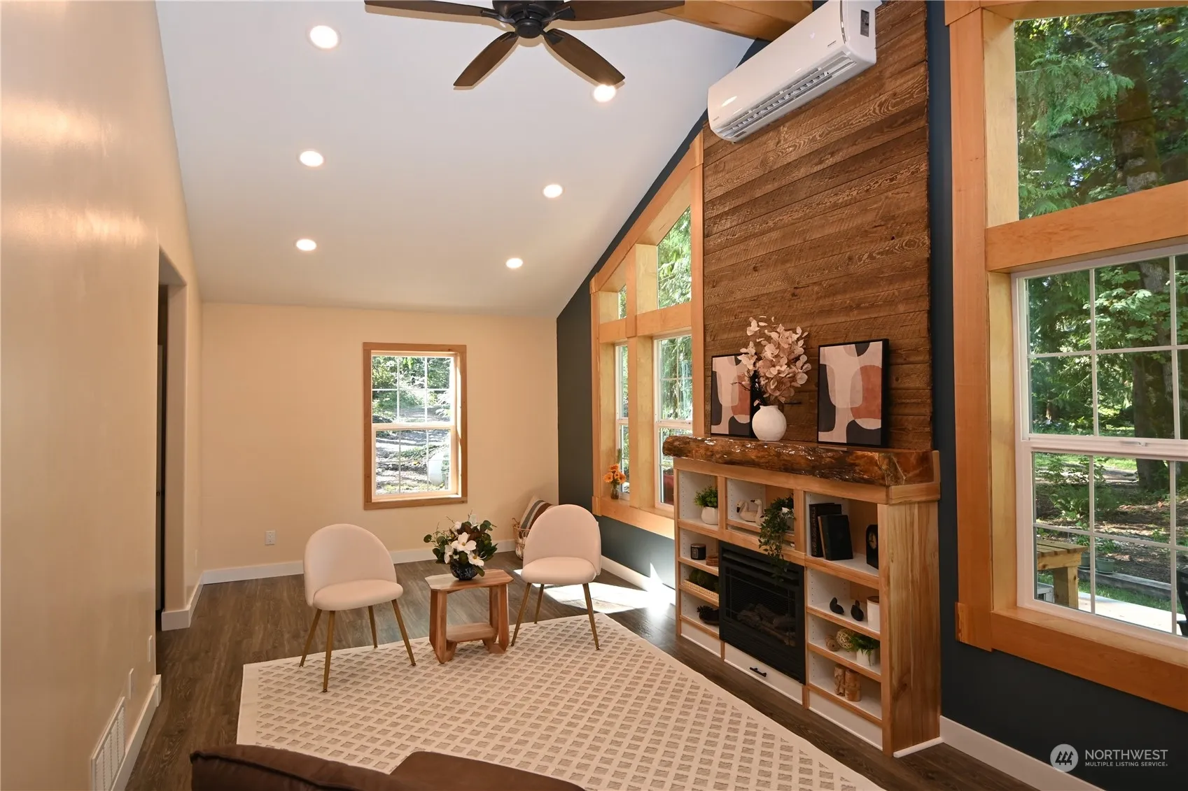 QUALITY NEW CONSTRUCTION ON 1+ WATERFRONT ACRES! 4bdrm/2.5 bath, glorious kitchen w/gas stove, SS appl, pot filler and luxurious acacia wood bar. This home showcases beautiful custom millwork, gas fireplace, vaulted ceilings, LVP floors, 7′ solid doors, and a chic dining area that opens to 2 decks. Built-in vac + energy efficient heating and A/C simplify living. Main floor primary w/private deck, 5-piece ensuite boasting heated floors, blue tooth speakers and lg walk-in closet. 2 bdrms up + 2 more spacious view rooms ~ flex rm, bdrms, office? Hardwiring thru-out for reliable internet reception. Oversized laundry/mud rm, LARGE SHOP/garage + expansive deck that faces your 230 ft of Skykomish riverfront! Love to entertain? A haven of privacy.
