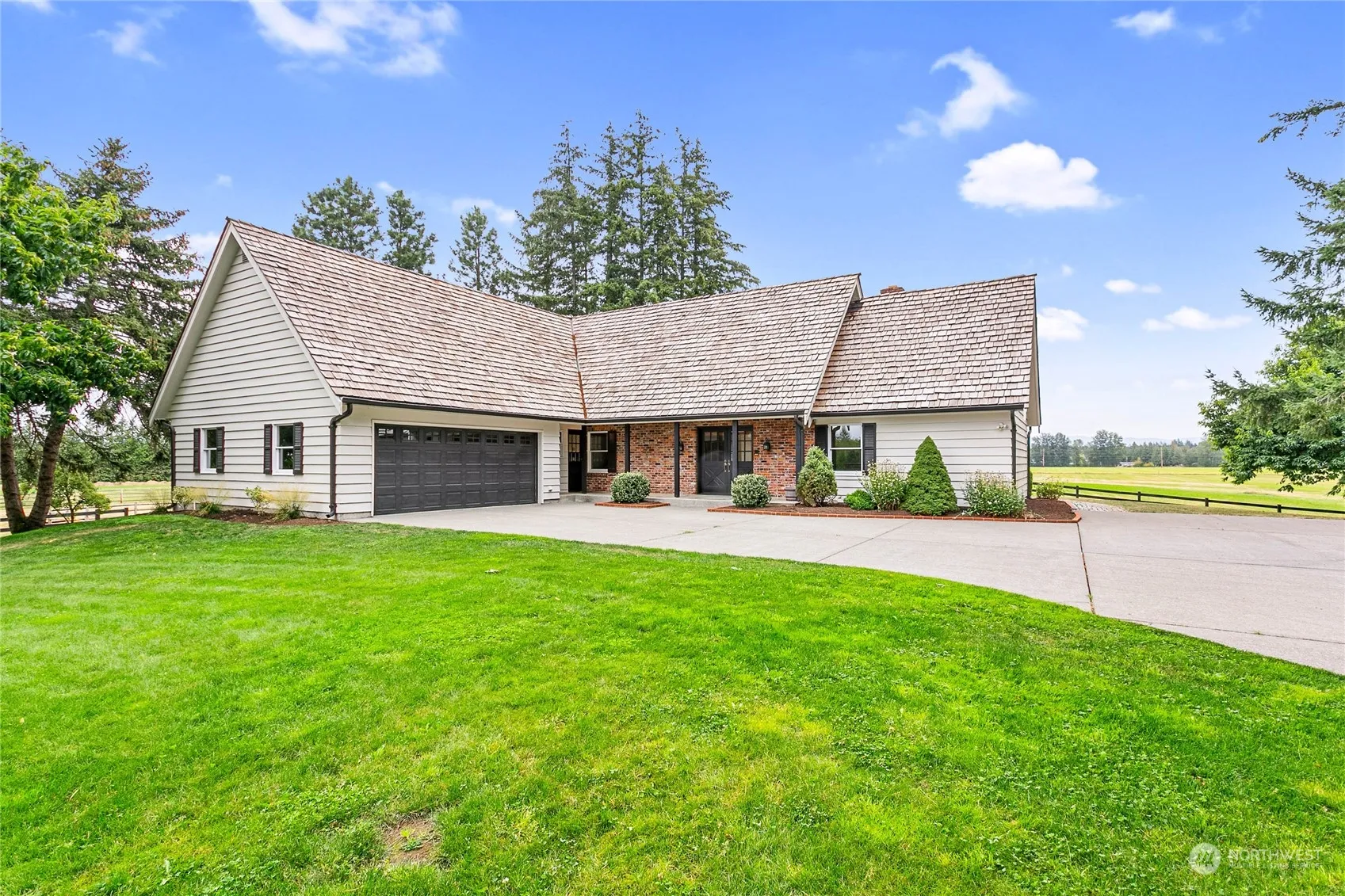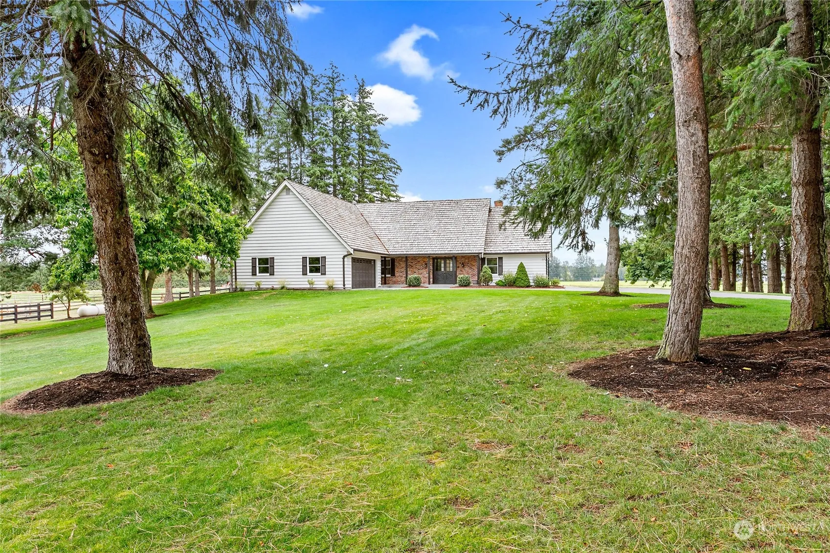 Nestled on 10 scenic acres in mid-county, this custom-built home boasts breathtaking views of Mt. Baker. Spanning 4,716 square feet, the 4-bedroom residence offers exquisite hardwood floors, a formal dining room, and a gourmet kitchen with high-end appliances, custom cabinetry, and granite countertops. Step outside to a covered patio perfect for year-round entertaining. The lower-level walk-out includes a hidden climate-controlled wine cellar and a relaxing sauna. The property also features a whole-house generator for peace of mind. A large shop with five overhead doors, a loft, a heavy-duty crane, and drive-through access at both ends offers exceptional functionality. With sandy loam soil, this property is ideal for horse enthusiasts.