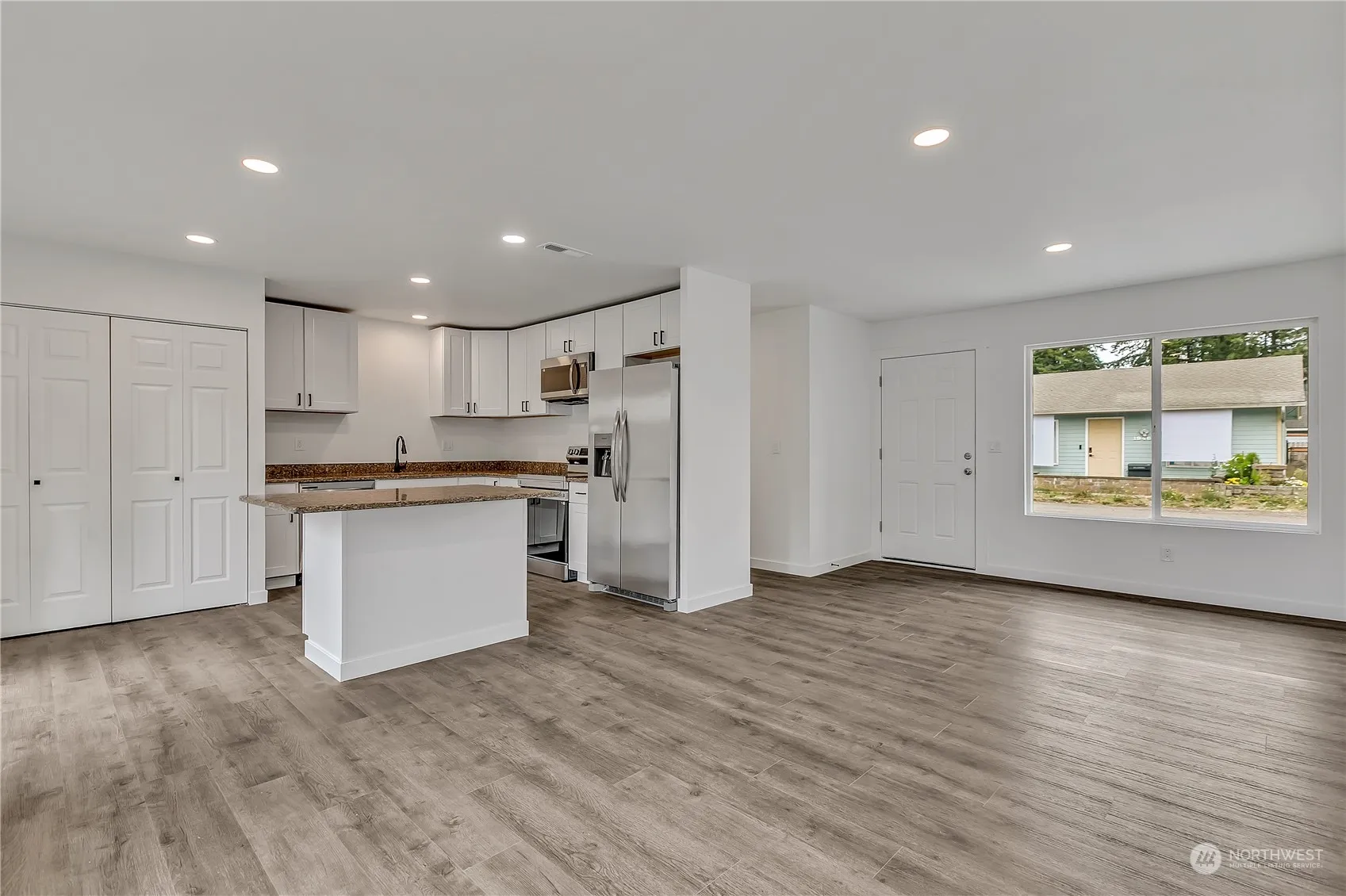 Welcome to your newly remodeled dream home! This property has been transformed with meticulous attention to detail, featuring everything brand new from the sheet rock out. The open floor plan flows seamlessly, perfect for both entertaining and everyday life. The modern white kitchen cabinets and island, paired with granite countertops, make the heart of this home truly shine. Enjoy the convenience of all-new appliances, including a fridge, microwave, oven/range, washer and dryer. Master bedroom boasts a private .75 bath, while an additional full bath is conveniently located in the hallway. Fully fenced backyard and finished garage. Located close to shopping and restaurants.