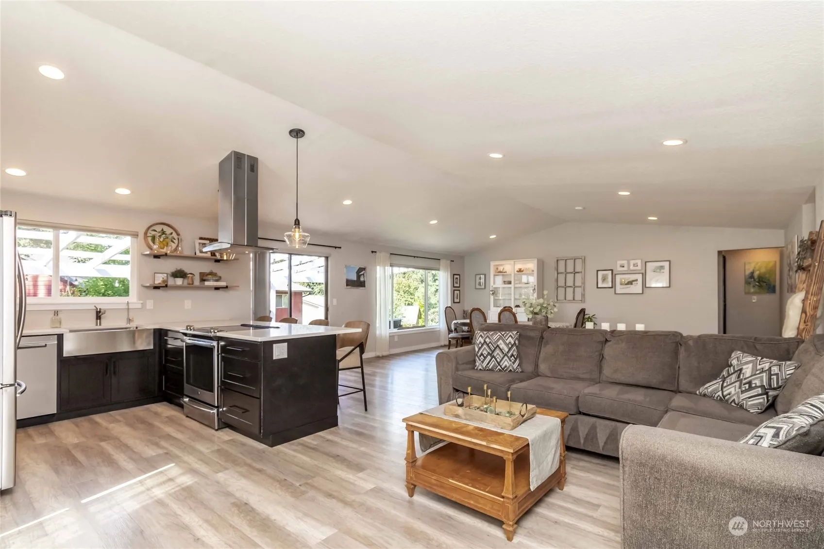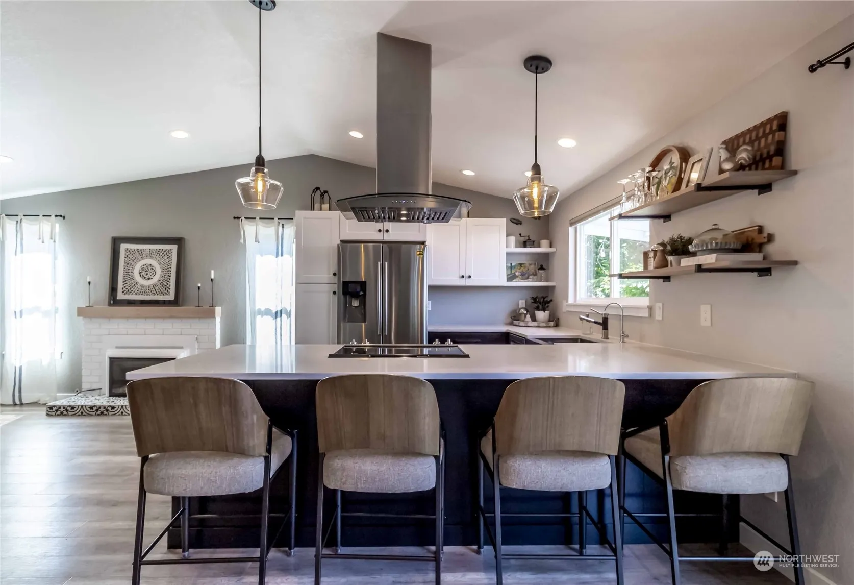 Featuring a Brand New Roof, this renovated rambler offers an open floorplan & tasteful updates. Once inside, you are welcomed by vaulted ceilings, beautiful flooring & an open concept floorplan. The great room features a large seating area, room for a massive dining table & plenty of room for a home office setup if desired-even a 2nd seating area is possible! The kitchen has been recently redone & features like Stainless appliances & hood vent, quartz countertops, two tone cabinetry, pendant lighting & farm sink. Don’t miss the gas fireplace~Primary suite is roomy & offers double closets + remodeled 5pc spa like bath w/ custom tile & shiplap walls. The patio is ready for BBQs; backyard has a shed & is fully fenced.