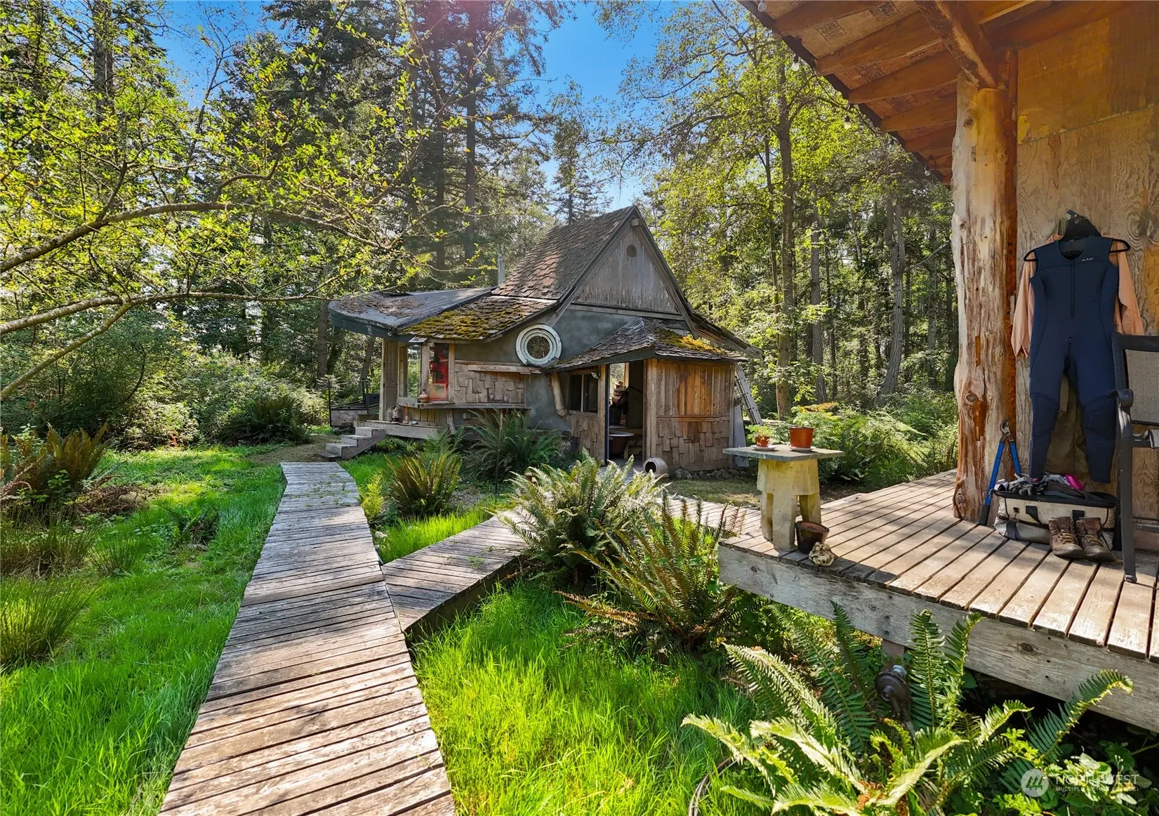 Complete a dream or make it your own dream w/new ideas on this magical mini-compound on @1.65 acres in the tiny home haven of Glencoe Lane on Guemes Island. Beloved artsy buildings dot the property, including a cabin to hang out in, a woodshed & whimsical straw bale “shop.” Easy stroll to the ferry landing, Guemes Island General Store, Guemes Mountain trailhead, & launch pads at public beaches like the 20 acre Peach Preserve. Two separate parcels, both with Lot Certification; Reasonable Use Exception needed. There is a Critical Areas Review from 2001. Buyer needs to gather information on nearby wetlands, well logs, septic soils tests. None of the buildings are permitted. Get creative!!! Glencoe Lane is an enclave for off-grid compounds.