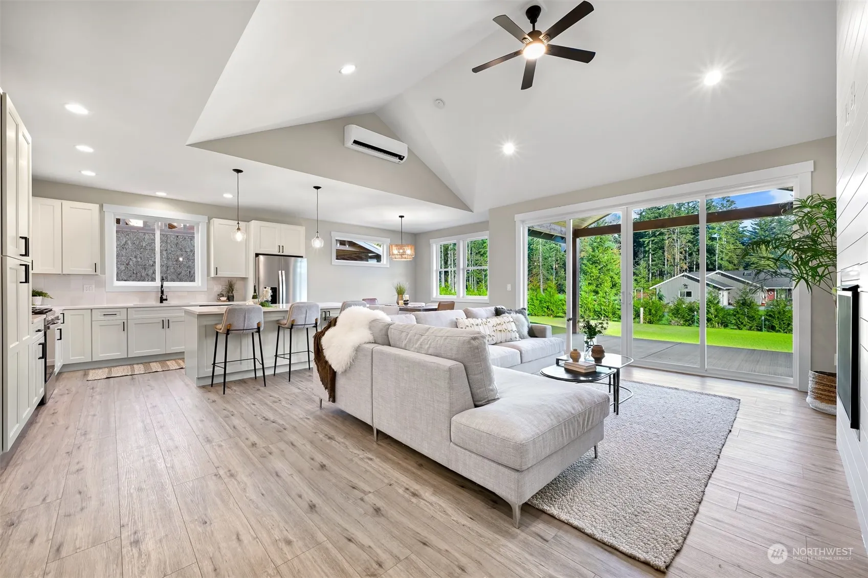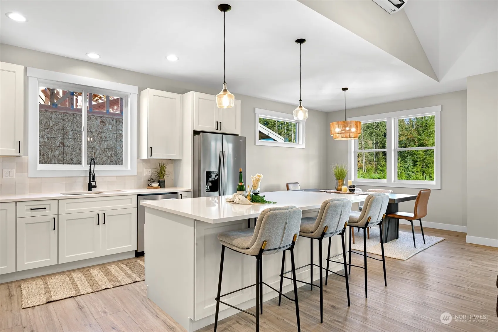 Step into this stunning new home offering 4 beds, 2 baths, and a versatile bonus room. The floor plan features modern finishes, vaulted ceilings, and a cozy gas fireplace. The expansive great room is perfect for entertaining, flowing seamlessly into the dining area and an open kitchen. The kitchen has plenty of storage, quartz countertops, a tiled backsplash, and stainless-steel appliances. The main floor master suite is a true retreat, complete with a walk-in closet and a spa-like bathroom featuring a tiled shower, soaking tub, and double vanity. On the main floor, you’ll also find two additional beds, a full bath, and laundry room. Outside, the large, covered living area offers a space for hosting gatherings and enjoying outdoor living.