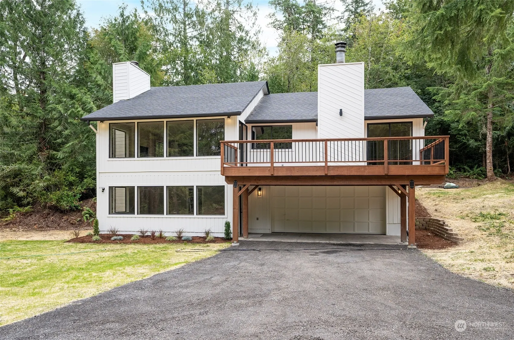 Updated 2100 sq f,t 3 bed 2.25 bath home on ove. 2.5 acres. Large lot & private feeling. Cedar siding, wrap around deck. Open Kitchen with quartz counters, wood plank floors & all new appliances. New doors & millwork. All new lighting & plumbing fixtures. Primary suite with a gas (propane)fireplace & spacious bathroom. New roofing, gutters & downspouts. New interior & exterior paint. Oversized 2 car garage. Come see & fall in love with your new home.