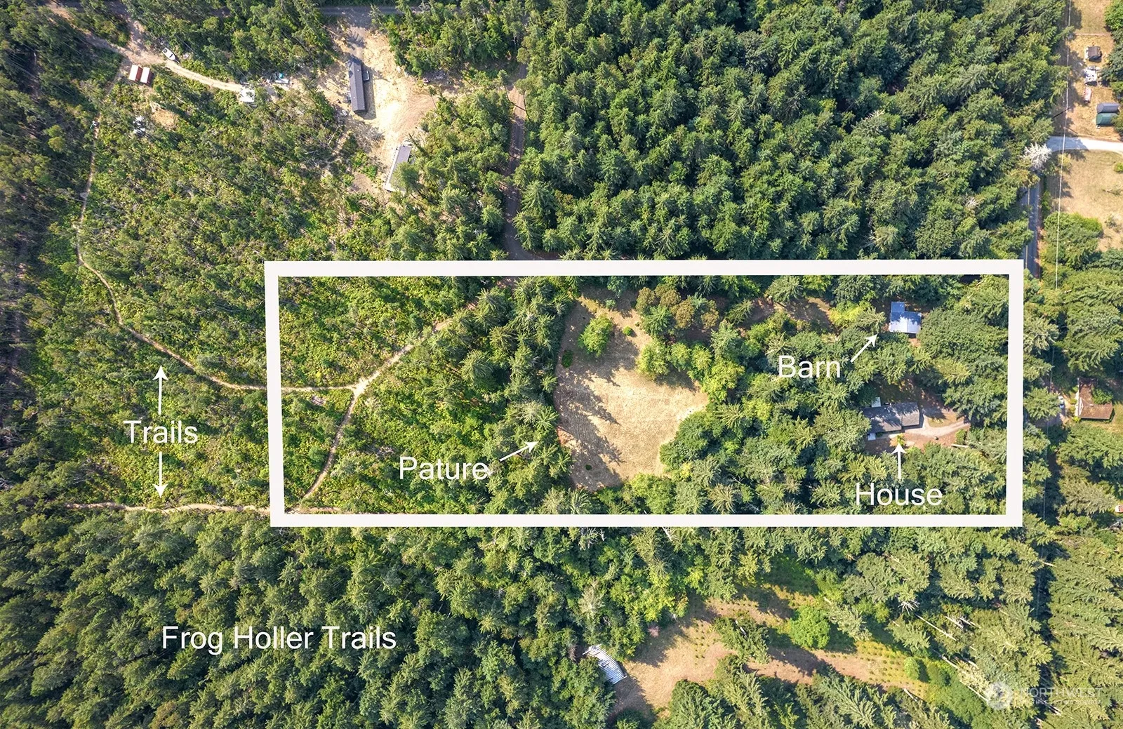 Explore this Westside Acreage Haven on 9.77 level acres, offering a sanctuary of natural beauty & rural paradise. The 1,830 sqft one-level home features 3 bedrooms, 2 baths, office, a cozy den with woodstove & covered deck! Adjacent to Frog Holler Forest with acres of trails, this secluded setting includes a 2-stall barn with hay storage plus tractor & tack rooms, perfect for hobby farmers & animal enthusiasts. Wax Orchard offers wide open spaces, black Angus cows, peony farms, stunning views of Mt. Rainier and minutes to the ferry. Nearby Lisabuela beach is perfect for swimming and stunning sunsets. This move-in ready home is ideal for passionate hobbyists, hiking and biking enthusiasts, and adventure-seeking ATV & dirt bike lovers.
