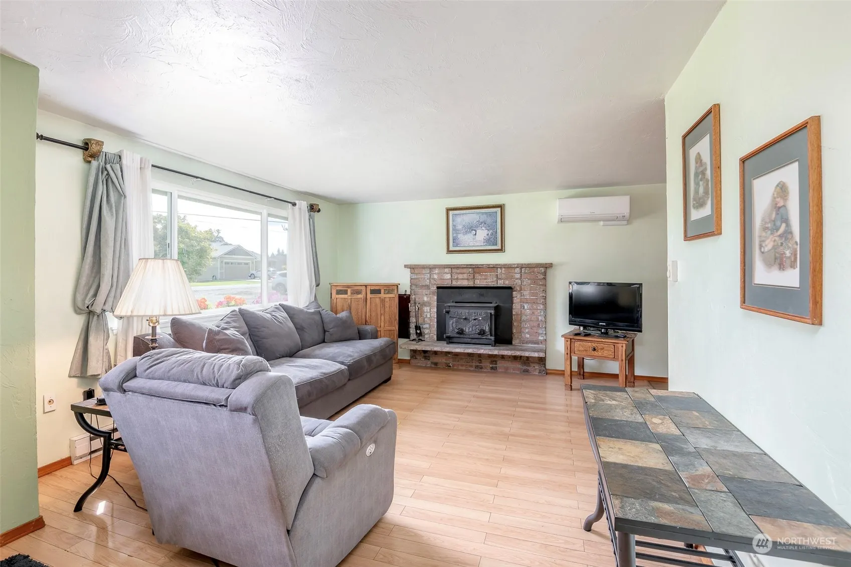 Welcome home to this lovingly cared-for 3bd, 2ba rambler nestled on a flat 1.25-acre corner lot. Surrounded by guardian-like Fir, Apple & Cherry trees in the back. This home offers unparalleled peace and tranquility. Inside, you’ll find a cozy living room featuring a wood-burning fireplace, ideal for chilly evenings, and a modern ductless mini-split system to keep you comfortable year-round. Enjoy the charm of updated interiors, including recent upgrades to PEX piping and brand-new windows installed in 2024.The property doesn’t just stop at the front door. Outside, you’ll find a newly insulated roofed 24X24 shop, a charming greenhouse, and jacuzzi, perfect for unwinding after a long day while your pets roam & lounge in the yard!