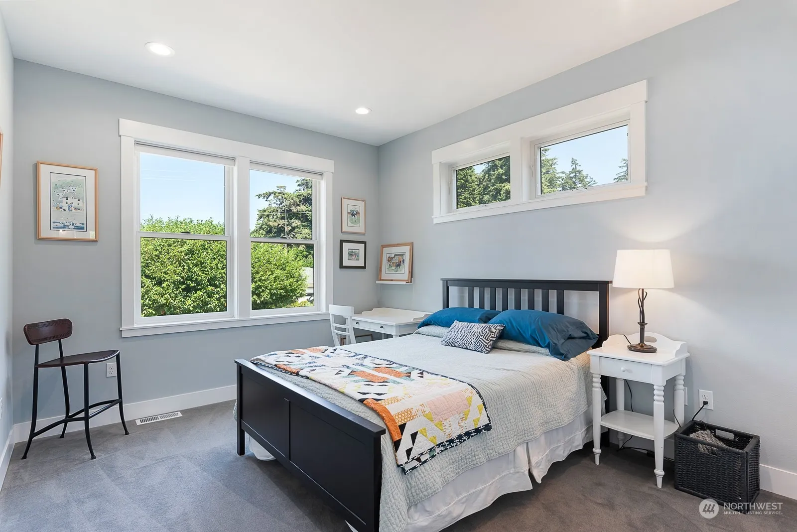 Timeless Cape Cod-inspired gem in desirable Cap Sante radiating charm & craftsmanship. Enter to bamboo floors, feature shiplap & stone walls. Chef’s kitchen with dining shines w/quartz island+black granite countertops, sliding door to walk-in pantry w/coffee bar. Relax in the living room with built-ins & stone fireplace. Upstairs rec rm, where vaulted ceilings & abundant windows fill the space w/natural light. Covered & open air upper deck+spiral stairs to captains deck with Guemes Channel & downtown views. Relaxing primary suite boasts scenic views, ensuite bath & walk-in closet. Gardeners delight exterior offers fenced yard, garden shed, lush landscaping & raised beds plus extra parking off alley, 2-car garage w/huge storage rm. Must see!