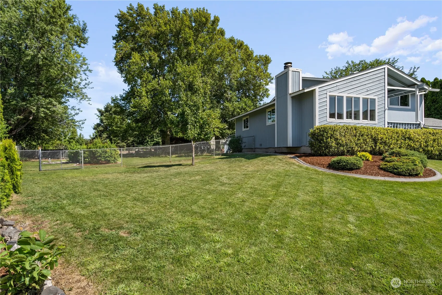 Freshly updated 4 bedroom, 3 bathroom tri-level home in beautiful park-like Windsong subdivision in sunny west Kennewick, WA with room for a large shop. It’s been recently painted, has new carpet & laminate floors throughout. Gorgeous new solid granite kitchen countertops in the bright & open white, eat-in, kitchen with a door to a back deck overlooking the yard. The combination living room & dining room has vaulted ceilings, lots of windows & a fireplace. Half a flight up is the primary bedroom suite with a ensuite bath & walk-in closet & two other bedrooms. Downstairs on ground-level is a family room with slider to patio in backyard, large bedroom with double closet, a third full bath & laundry room with enough room for a mini-kitchen.