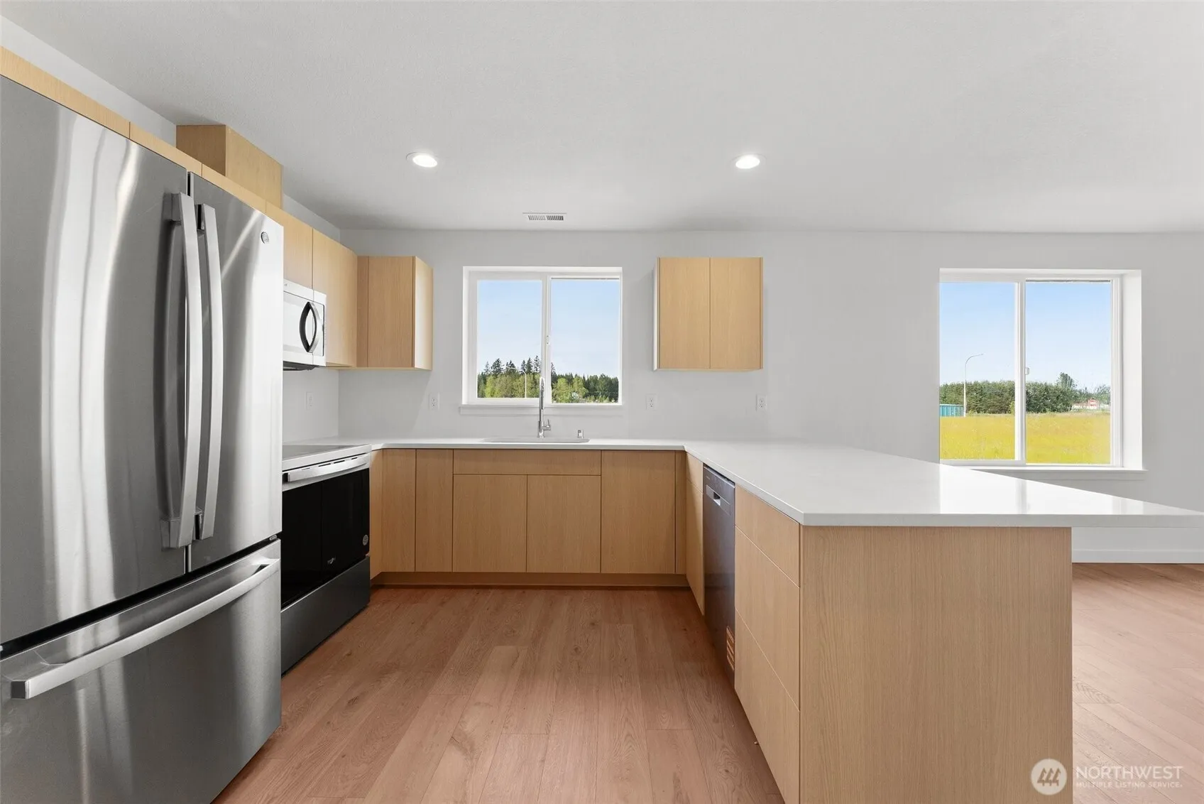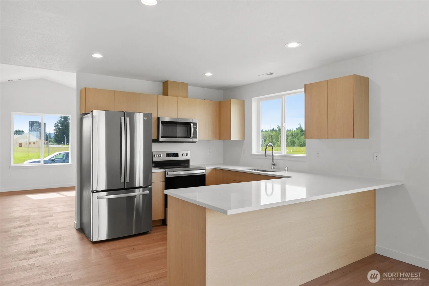 Brand new 1,282 sq ft single-level home in a immaculate Winlock neighborhood, just minutes from I-5! This 3-bedroom, 2-bathroom home sits on a spacious lot with beautiful mountain views from the covered back patio. The open-concept floor plan is bright and welcoming, featuring quartz countertops, stainless steel appliances, and stylish finishes throughout. Enjoy year-round comfort with an energy-efficient heat pump and forced air system. Cultured stone accents on the front add to the home’s charming curb appeal. A perfect blend of modern living and scenic surroundings!