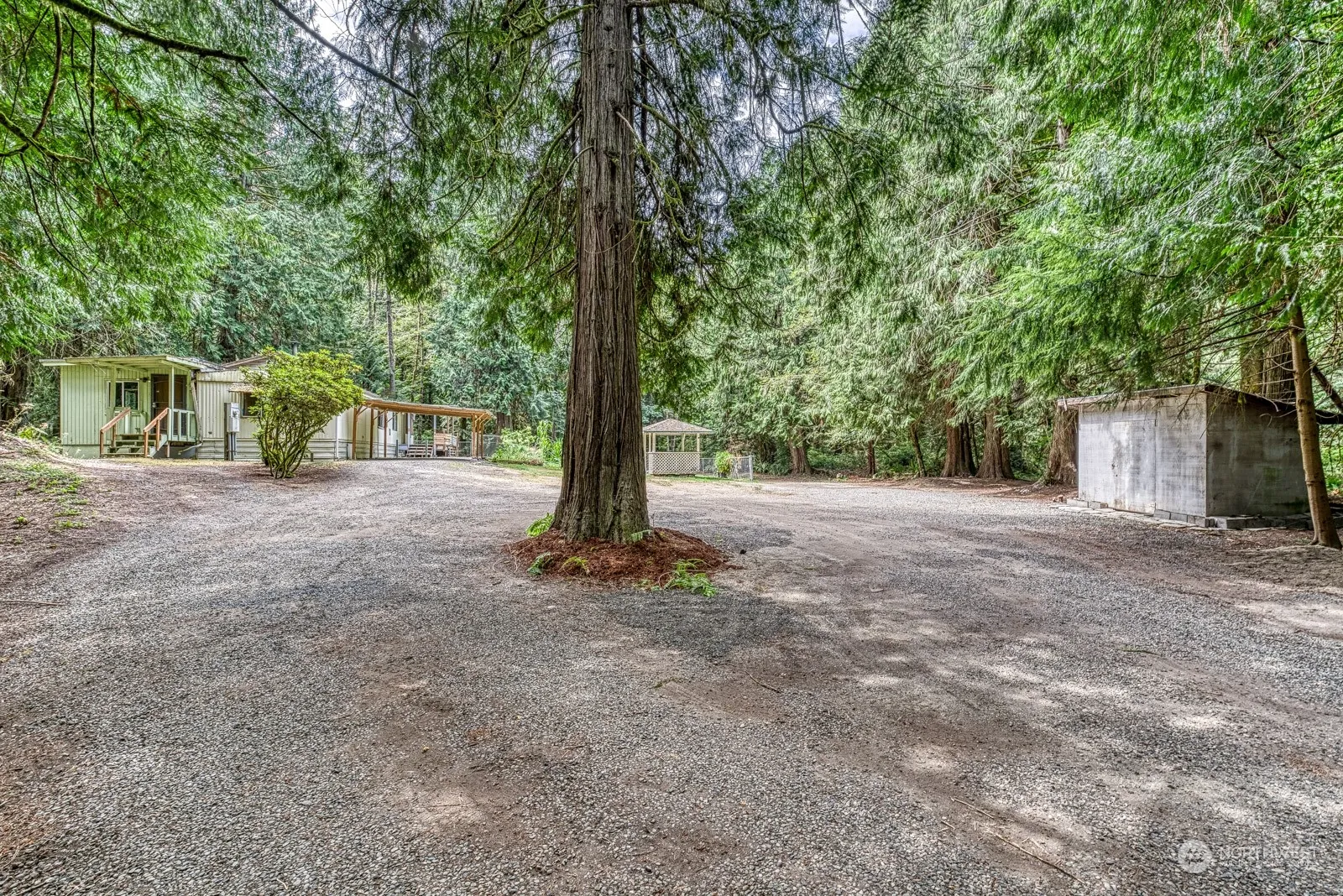 2.18 acres of quintessential PNW beauty! Large established cedars, maples, and stunning understory full of giant ferns give this level land amazing privacy. The property features a cleared building area, community well, installed 3-bedroom gravity septic system, and power on-site. An older, clean manufactured home offers immediate living or rental income potential—previously rented for $2300/month. Enjoy the beauty and tranquility of country living with an easy 10 minute drive to the Gig Harbor Costco, Target, Albertsons, and more. Five more minutes will put you in picturesque downtown Gig Harbor with great restaurants, shopping, and community activities!
