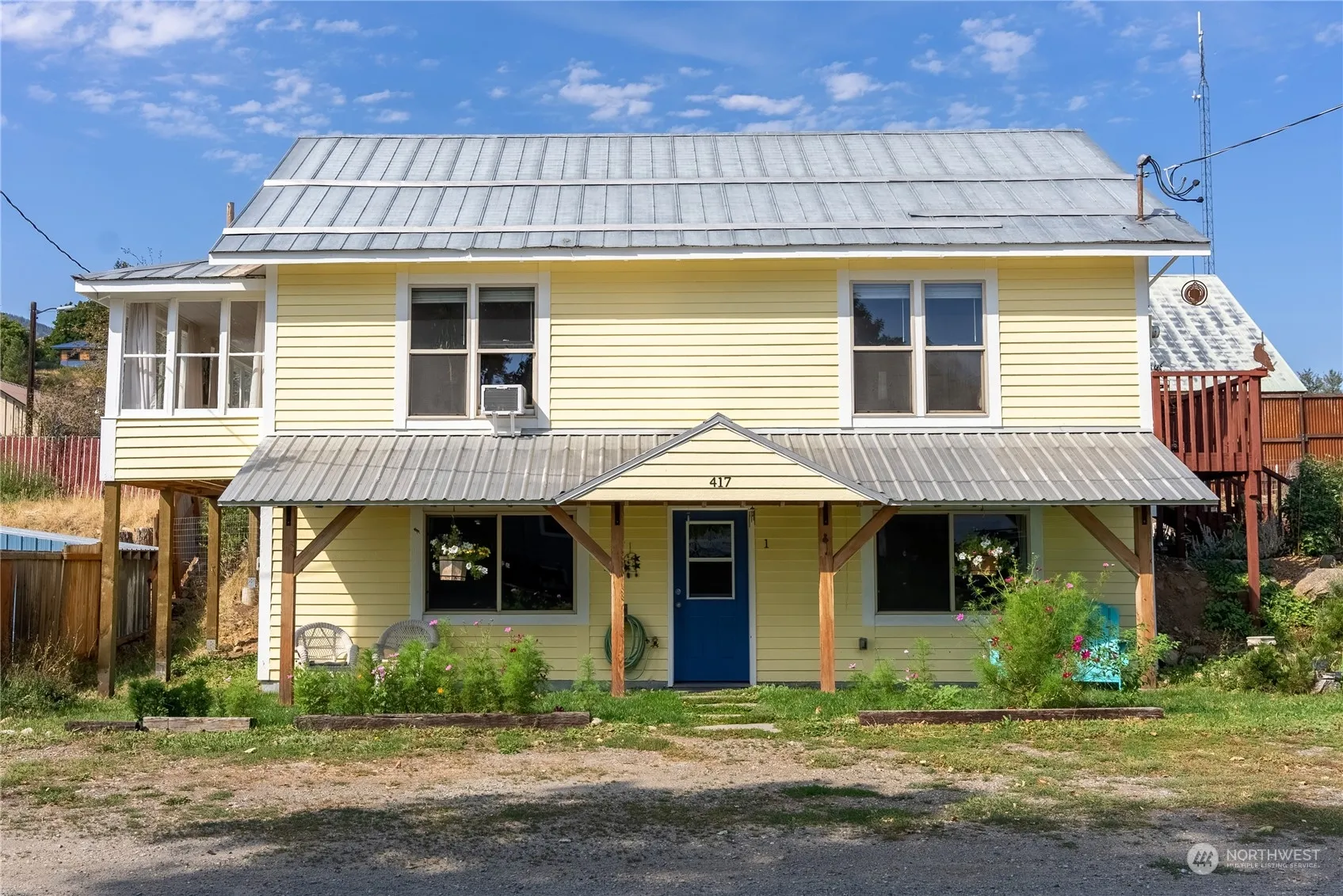 Oasis in the heart of Twisp! This charming duplex, nestled on a peaceful dead-end street, has been recently updated and is steps away from all that Twisp has to offer. The upstairs unit features 2 bedrooms and 1 bath, with a bright, open floor plan and a delightful sunroom that opens to a private backyard lush with perennials and fruit trees. The lower unit, with 1 bedroom and 1 bath, offers a generous living area and a large laundry room. Ideal for those seeking a personal residence with extra income opportunities, this property has been lovingly cared for by the current owners and is move-in ready. Adjacent lot is available for $110k, complete with gardens, fruit trees, a labyrinth, and scenic views, offering even more possibilities.