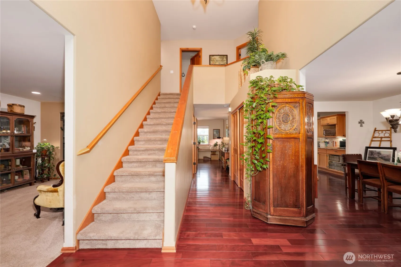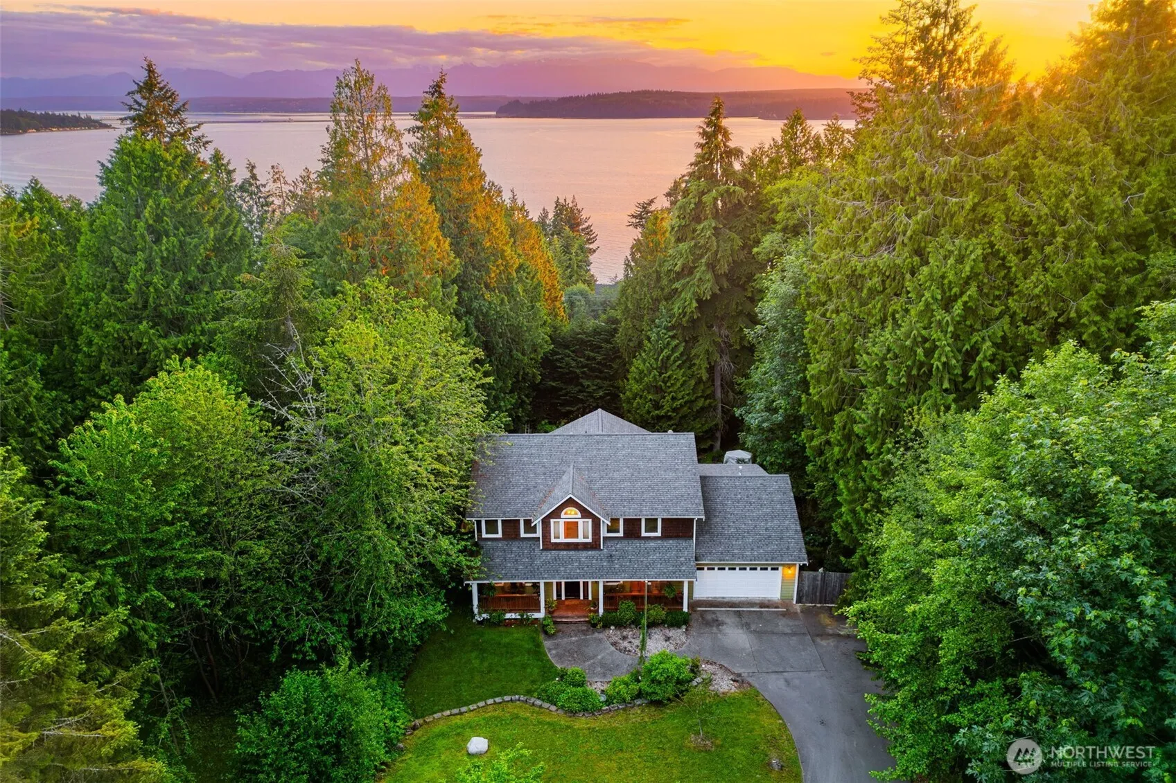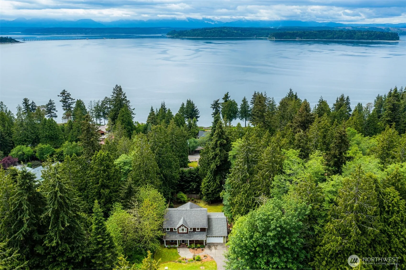Discover serene living in this stunning cliffside beach enclave with peek-a-boo views of the Olympics and Hood Canal. This roomy mini-mansion features five generous bedrooms, offering the charm of living among the trees. Enjoy both privacy and convenience to town with a well-designed three-level layout. Two primary suites each include five-piece baths and jetted tubs for ultimate relaxation. The expansive lower-level suite offers a large walk-in closet, perfect for multi-generational living. The fully fenced backyard is ideal for gardening lovers. Entertain guests year-round from the oversized deck. Blending style and comfort, this exceptional home is ready to welcome you.