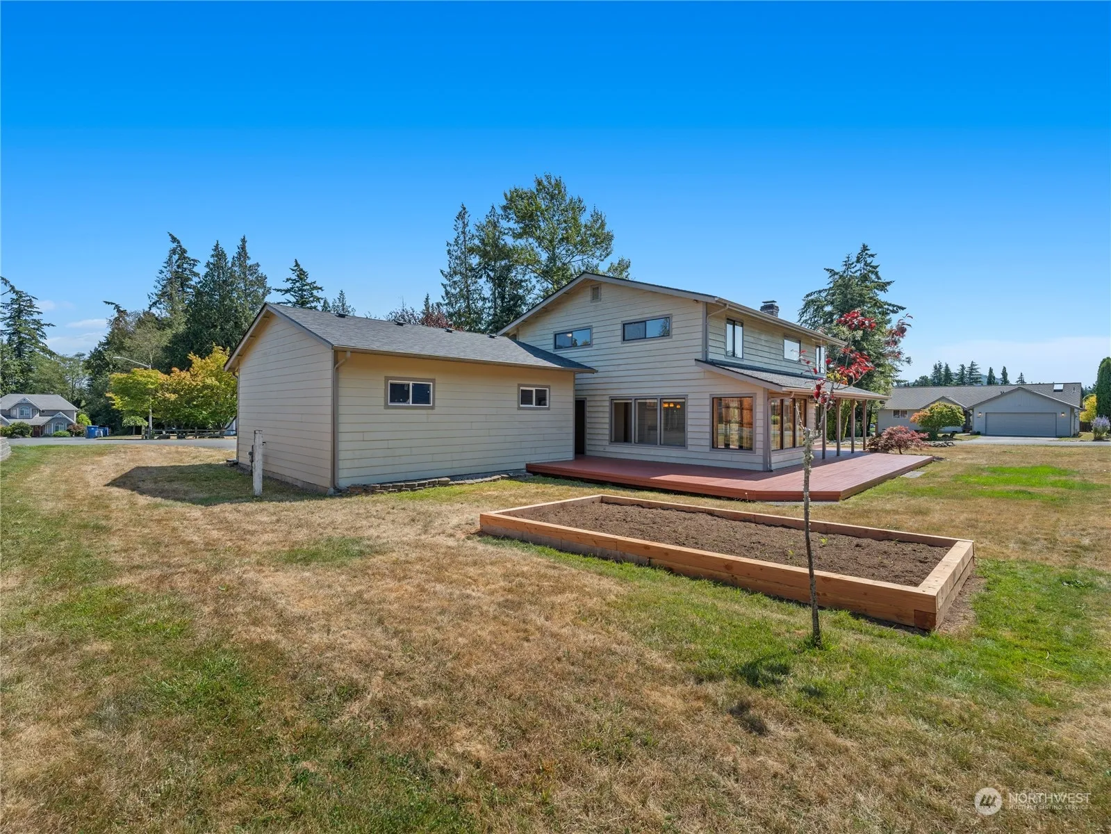 Quality custom 3 bedroom, 2 bathroom, 2308 SF home on a large corner lot. B Avenue is a quiet road and is close to the Anacortes forest land trails. Oversized 650 SF garage with high ceilings. Entertain on the 800 SF deck that has been newly painted. Living room has high ceilings and a wood fireplace. Kitchen has granite counters and SS appliances. The house has been remodeled in the past. Upper level has three bedrooms and a large family room. There is a nice sunroom on the back of the house. Large utility room. This house has lots of closets for storage. Large raised garden bed. Off street parking for your boat and RV.