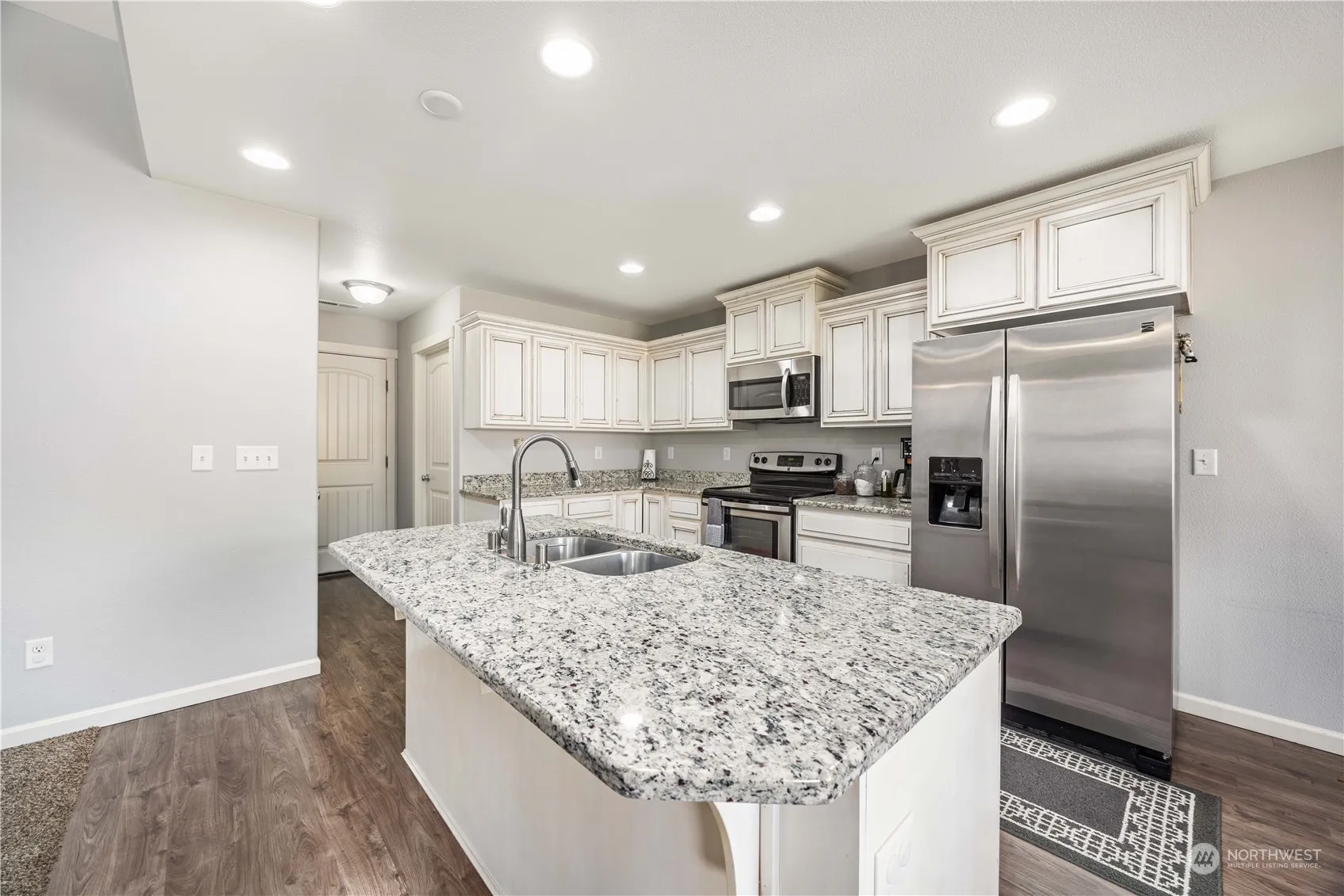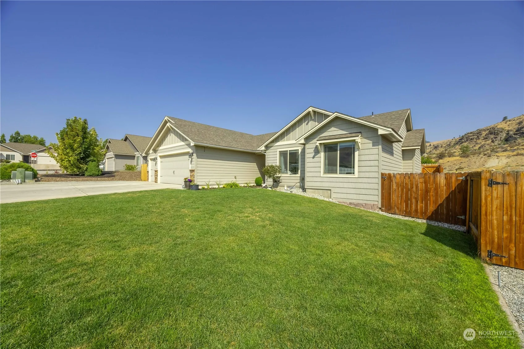 Mint condition Craftsman style rambler in the highly sought-after SunCrest development. Home enjoys evident Butte views from this outside perimeter location, only 1-mile from downtown, lake access, nearby ball-fields, Walmart, & clinic/hospital. Hands down the best & most established neighborhood in DT Chelan. Home features 3beds/2baths + office, 1,528sqft, 3 car garage, outside shed for storage, fully-landscaped both front & back w/ automatic sprinklers, & back patio to overlook the undeveloped country setting. Inside find vaulted ceilings, LVP floors, SS appliances, window treatments, natural granite counters, ceramic tile, a nice laundry room off of garage + a 5 piece primary bathroom. Enjoy easy living from 1015 Sunny Brooke Ln.