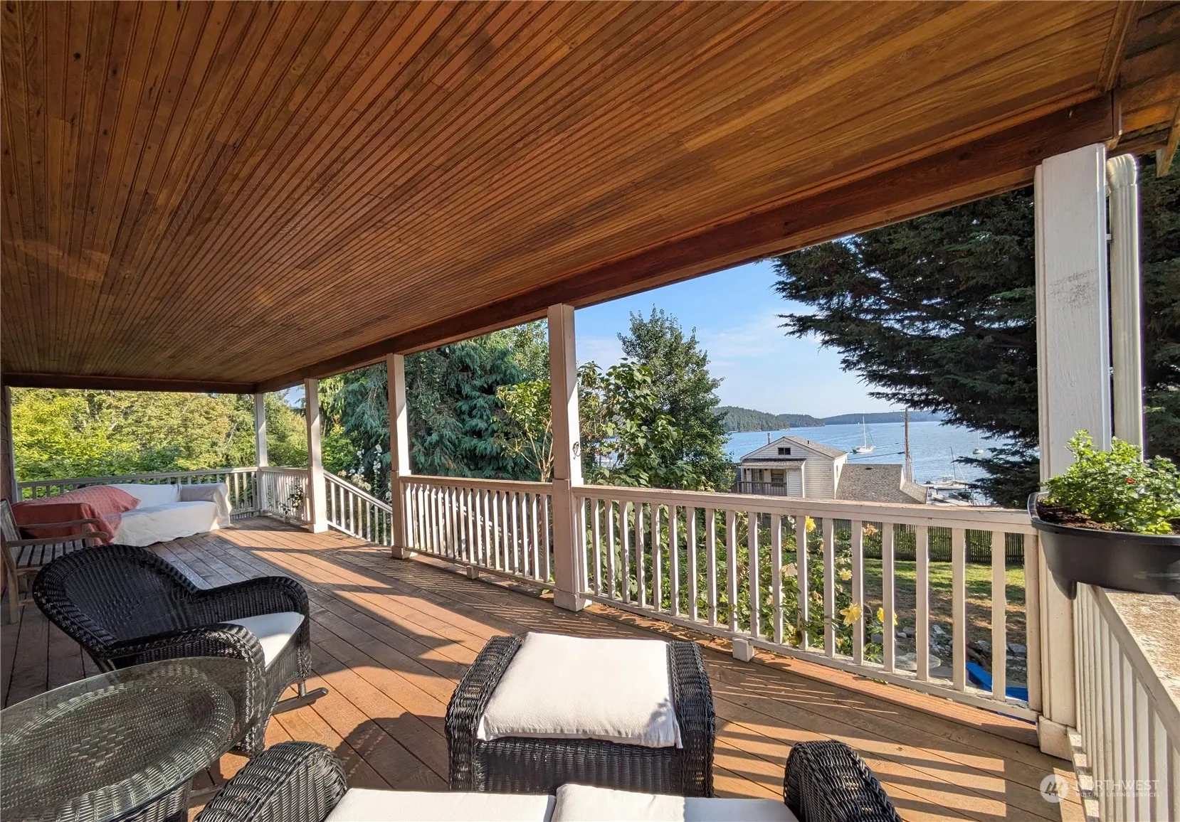 WEST SOUND water view home with shared DOCK! Craftsman-inspired 3 bedrooms and 3 baths. Enjoy year round entertaining on the covered veranda. Watch the sailboat races, sea planes, and sparkling waters of sunny West Sound. Your 30′ slip on the shared dock is just steps away making for an easy commute via boat. Inside you will discover vertical grain wood floors salvaged from the historic West Sound Store building. Gorgeous Stone fireplace, hand hewn mantle, and two sets of French Doors complete the living area. The center showcase of the home is the chef’s kitchen with country home coziness and huge pantry. The primary suite is on the main floor and has french doors opening to a patio with hot tub. Oversized garage, workshop, and storage.