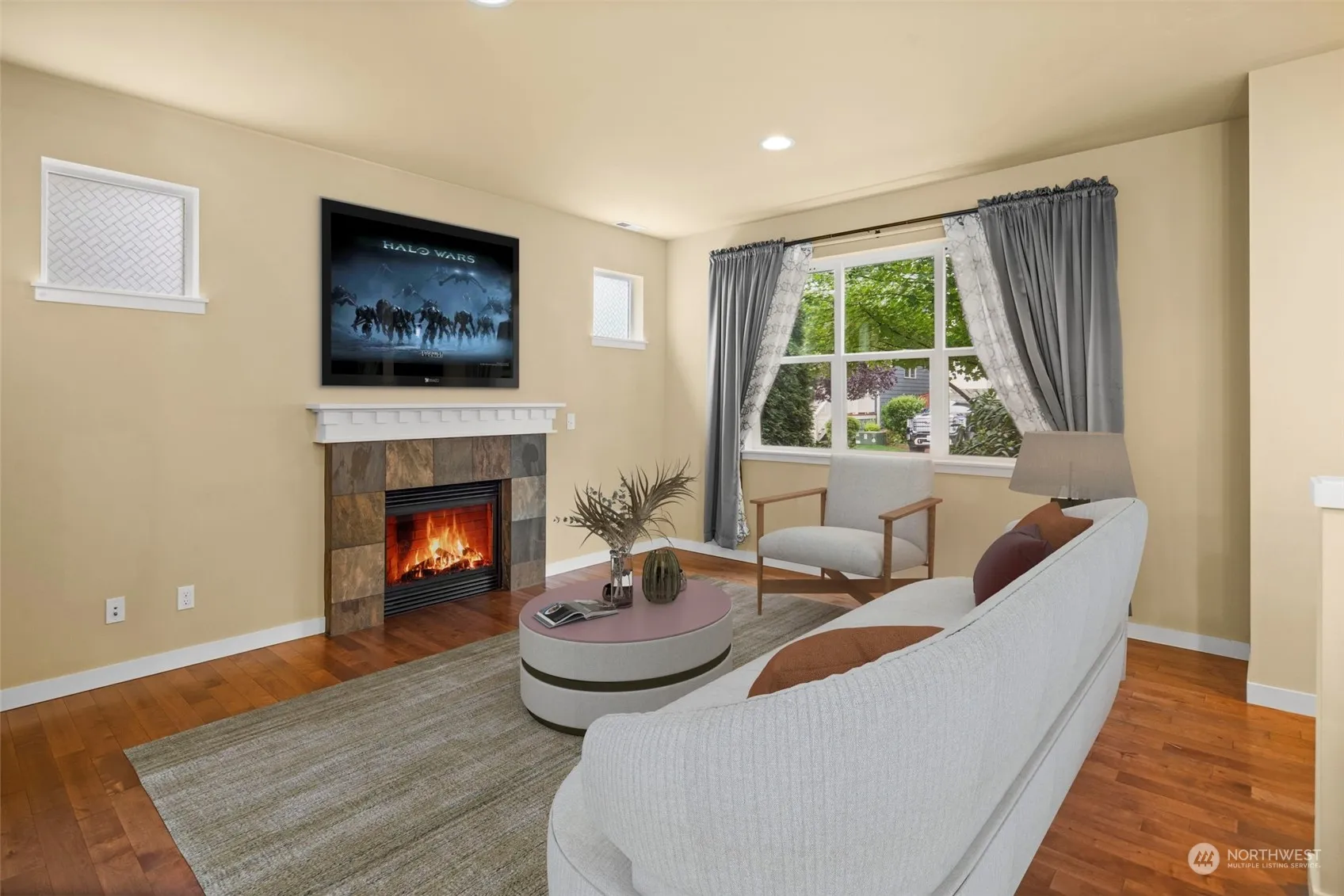 Rare opportunity awaits in the highly sought-after Silverleaf community! This bright & open floor plan boasts beautiful hardwood floors throughout the main level, providing a seamless flow. The kitchen is equipped w/ ss appliances, a spacious island & a gas range. Upstairs the owner’s suite features a vaulted ceiling, private bath & walk-in closet, along w/ two addt’l bedrooms & a full bath. Add’l highlights include a cozy gas fireplace, air conditioning, fully fenced & low-maintenance yard & a large garage w/ ~300 SF of lofted storage space. Community offers a playground, park & is conveniently located just minutes away from shopping, major highways & bases. W/in the sought-after CK School district. Only three minutes to Silverdale!
