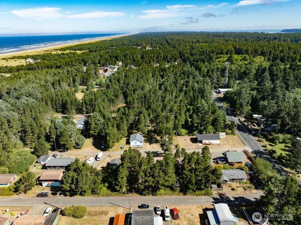 One parcel with two adjoining wooded lots totaling .24 acres (approx. 212’ wide x 50’ deep) located on quiet 166th Place, just 5 miles north of downtown Long Beach. This property offers privacy, paved road access, and power available at the street. A sandy path at the end of the street provides direct access to the Pacific Ocean — ideal for beachcombing, kite flying, and sunsets. The land offers flexibility for RV use, a beach cottage, small cabin, or manufactured home. A feasibility study by A+ Design & Consulting identifies potential locations for a well and a 2-bedroom septic system. Final septic approval would require a winter water table evaluation by Pacific County. Buyer to verify all uses, utilities, and approvals.