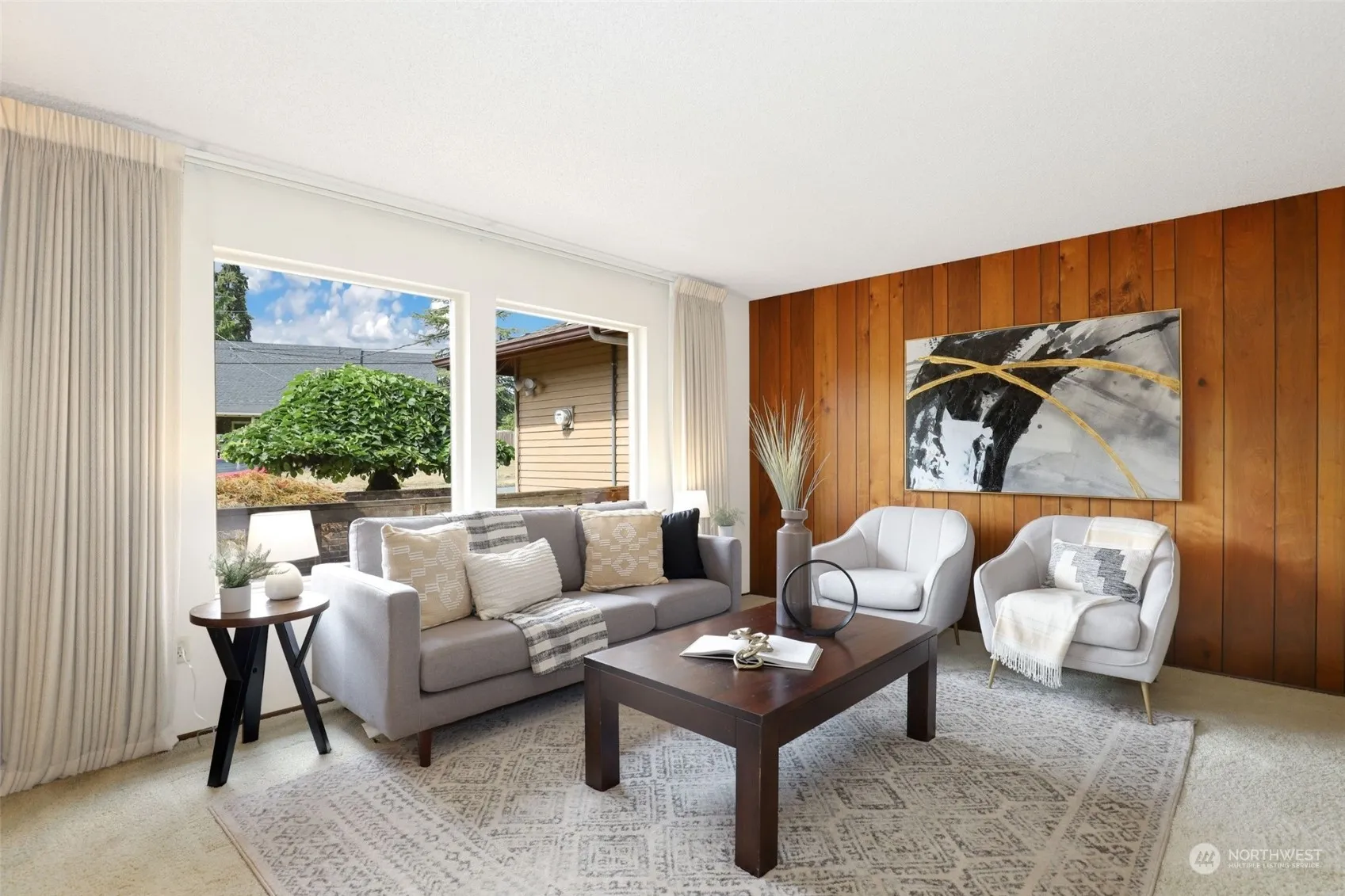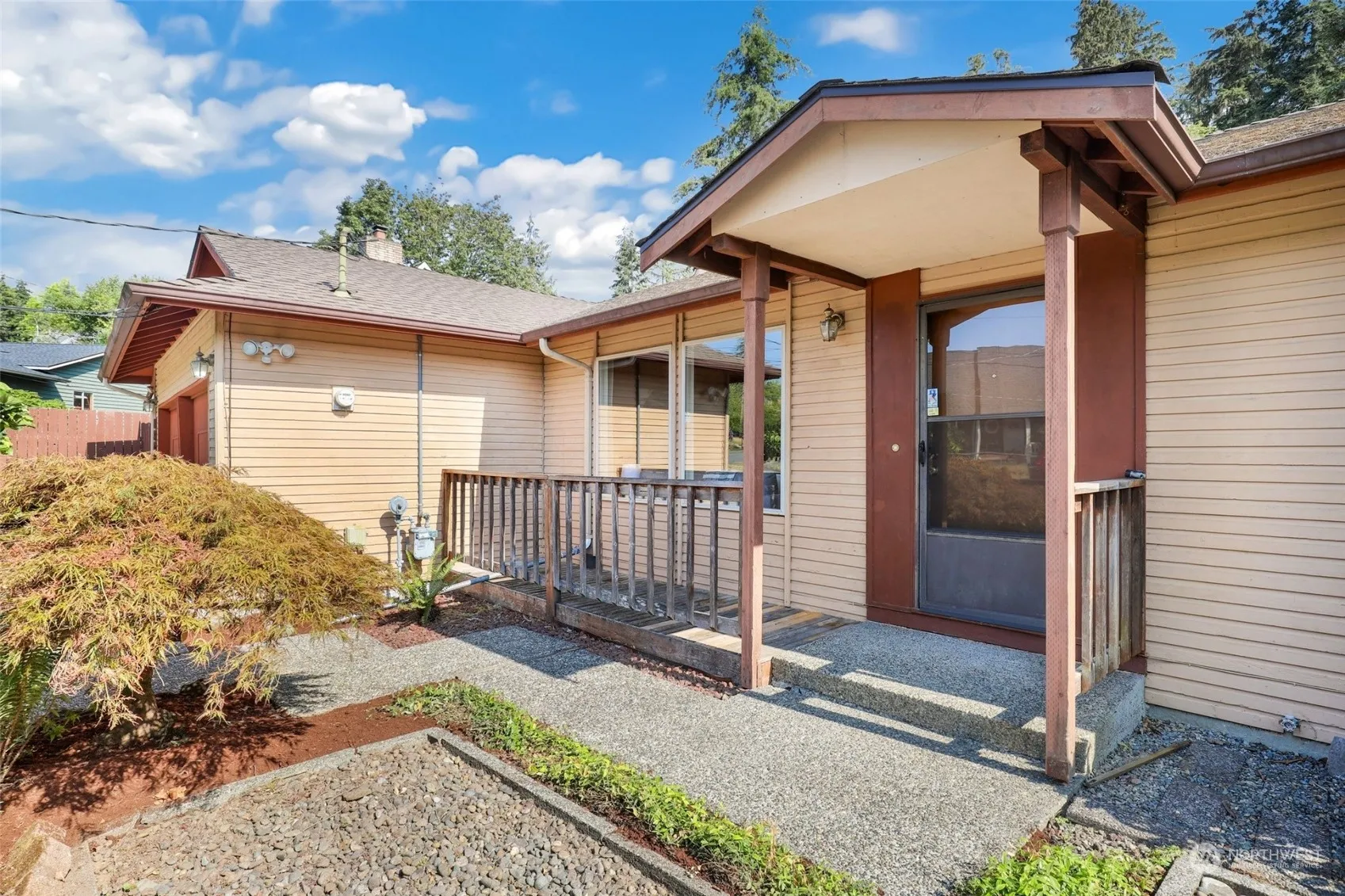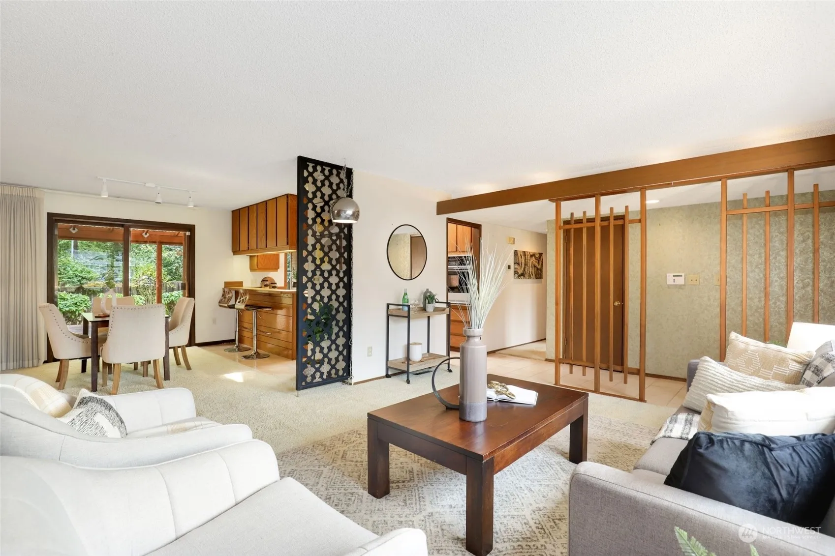 Great Mid-Century Modern rambler in Des Moines! Located on over a ¼ acre lot, this home is ready for your touch! With high ceilings & lots of light, you’ll enjoy two living spaces, including a cozy gas fireplace and wet bar. Down the hall, 3 bedrooms and a bathroom await, plus a generous primary suite with bathroom and WIC. Off the family room, find a bonus room with a closet and spacious laundry room. Heading out the sliding door, there’s a covered back deck and large, flat yard with mature landscaping. Backyard is fully fenced with an outbuilding for storage. Roof is approximately 10 years old, and water heater and furnace are in great shape! This wonderful home won’t last! Please submit offers by Tuesday.