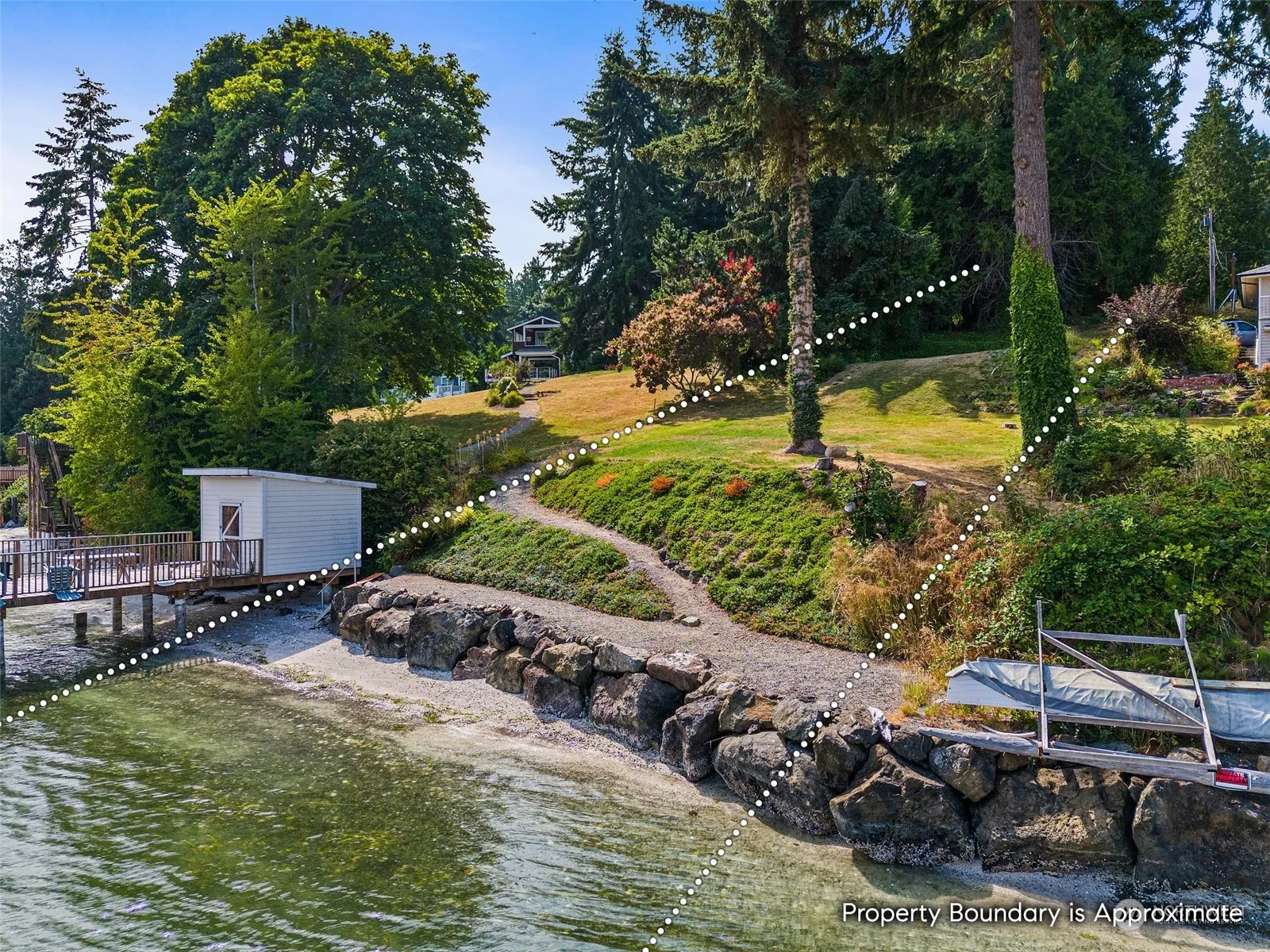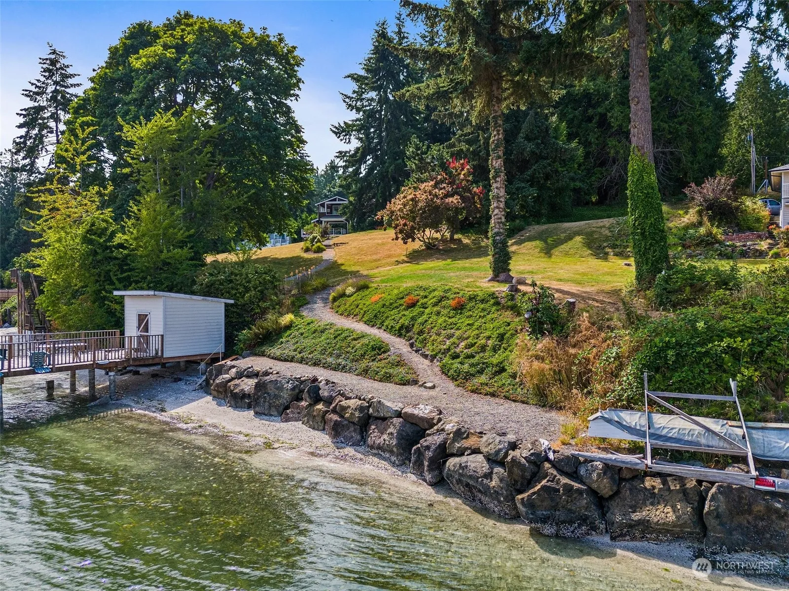 The last undeveloped waterfront home site on Suquamish’s coveted Angeline Ave is effectively shovel-ready for your new waterfront home. With due diligence completed and included, you’ll save years of headache by taking advantage of the seller’s investment. The Agate Passage shoreline is protected by a rock bulkhead with easy access to the sandy pebble beach and tidelands with mooring buoy. The property has city water, power, and a sewer connection on site. The large home site is elevated above the gently sloping grassy waterside yard, providing stunning views of the Puget Sound and Mt. Baker, while mitigating flood risk entirely. A 50-amp motorhome plug and a flat area to park allows for immediate enjoyment while building your dream home!